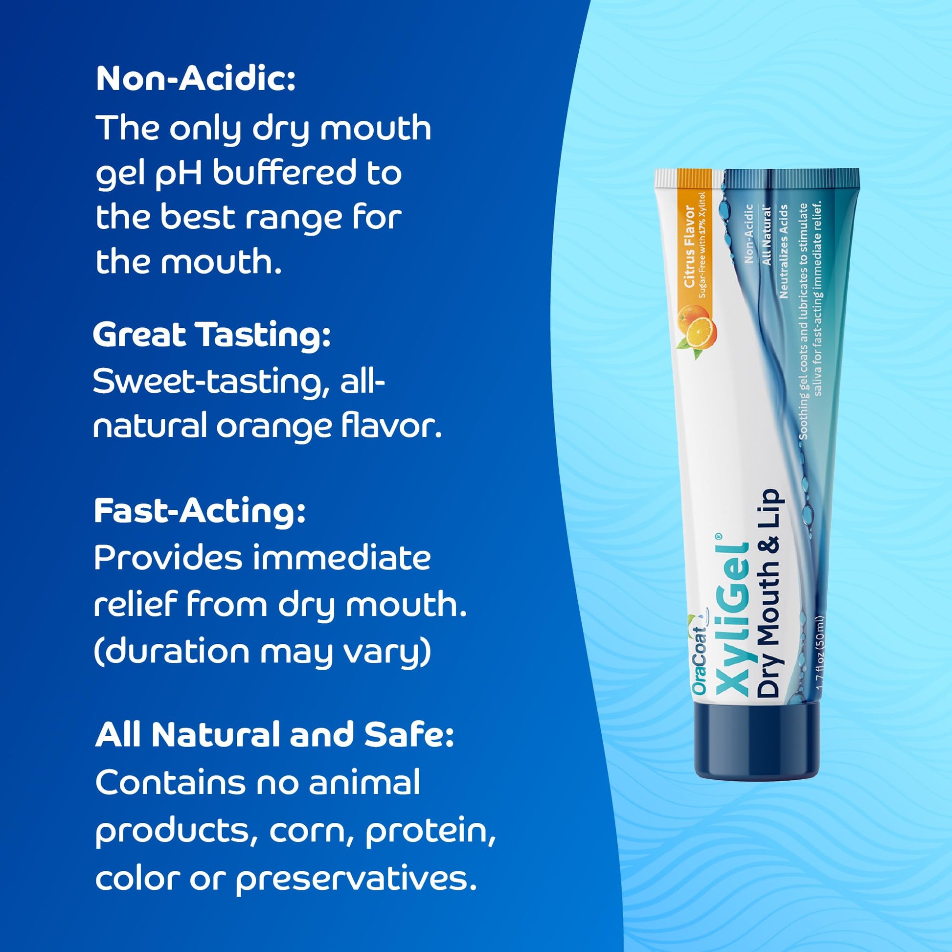 - NON-ACIDIC, GREAT TASTING GEL: OraCoat XyliGel acts as a mouth moisturizer for dry mouth, maintaining pH 7.4 to reduce plaque; a gentle yet effective saliva substitute dry mouth care choice with gum xylitol care