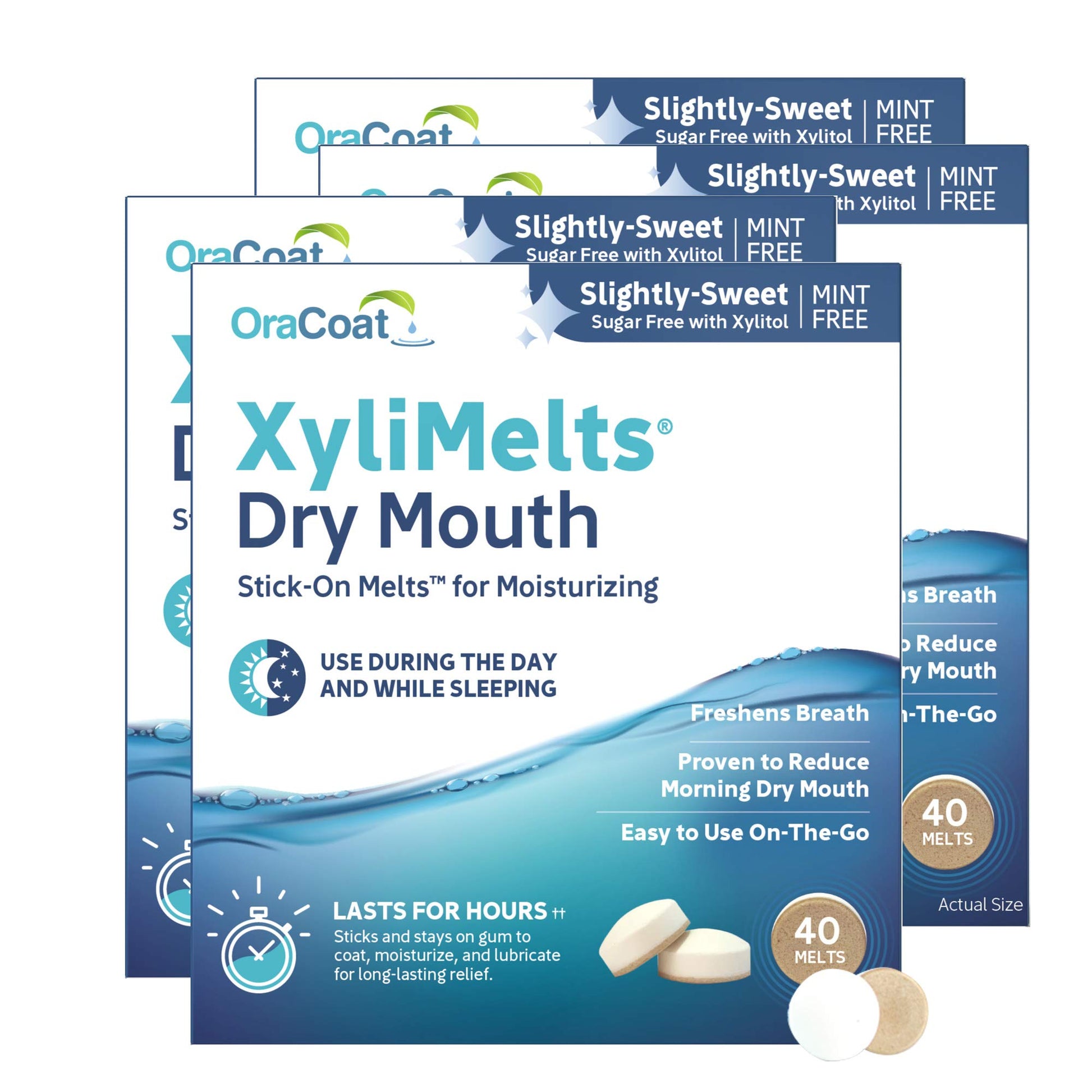 Oracoat XyliMelts for Dry Mouth Night Time or Day - Moisturizing Dry Mouth Adhering Discs, Sugar Free with Xylitol, 40 Count - 4 Pack, Slightly-Sweet Flavor, 8-Hour Relief