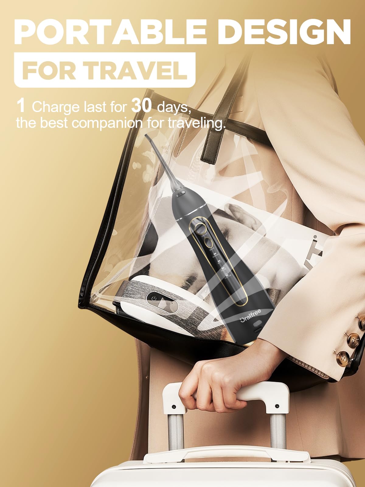 Oralfree Water Flosser Teeth Pick - Dental Cordless Portable Floss Picks Rechargeable Travel Pik Irrigation Cleaner IPX7 Waterproof Oral Irrigator Electric Flossing Machine for Home Teeth Cleaning