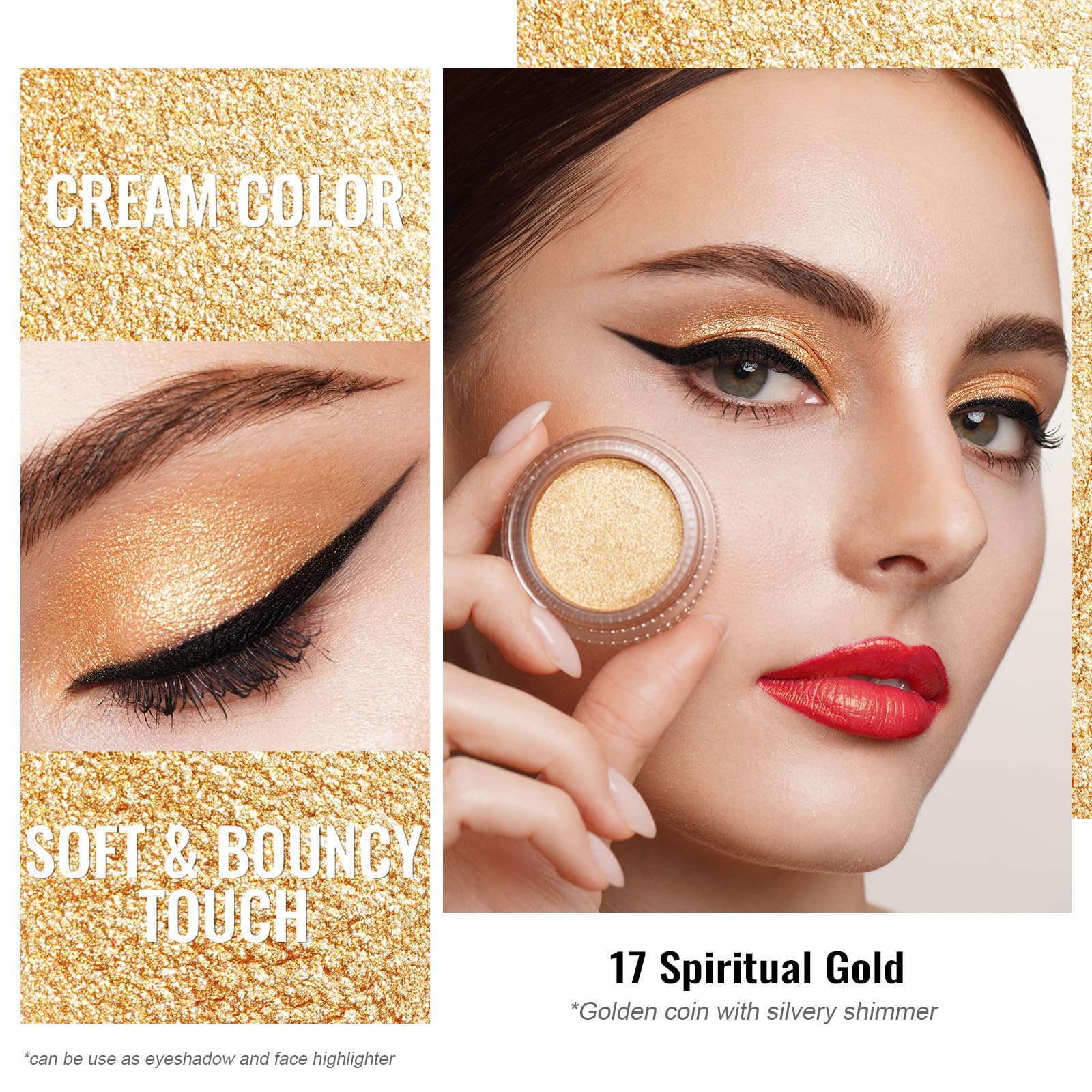 Oulac Cream Eyeshadow also for Highlighter Large Capacity Highly Pigmented Eye Shadow Waterproof &Long Lasting with Moisturizing Formula, Shimmer Glitter Eye Makeup. 6g.P05+17