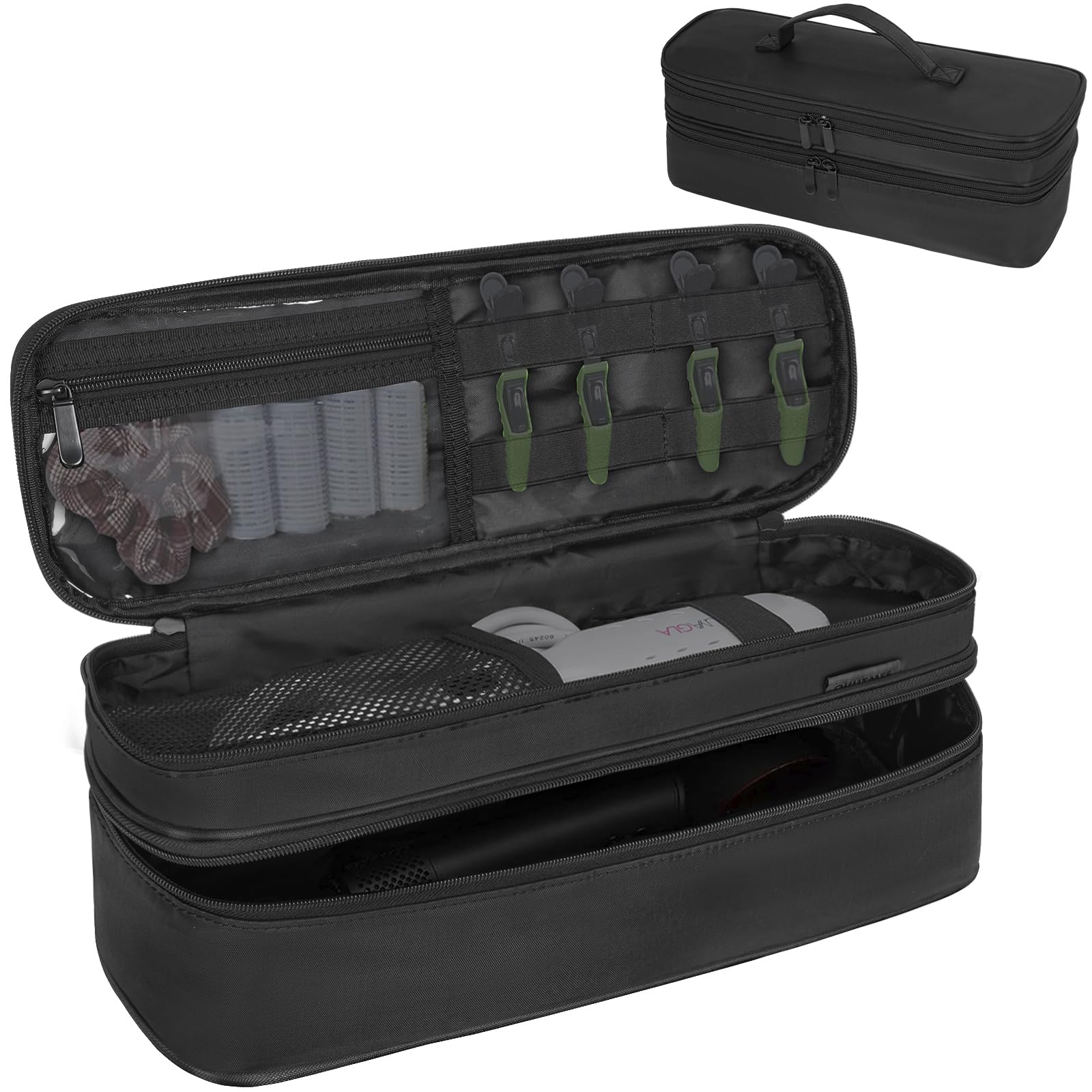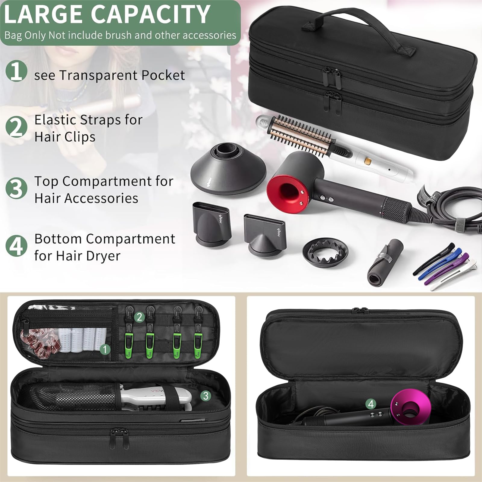 - 【Large Capacity】: Our carrying bag has two spacious compartments, a zipper transparent pocket and multiple elastic bands secure clips, 1 mesh pocket with elastic for storage Curling iron. The second Layer is to storage your hair dryer
