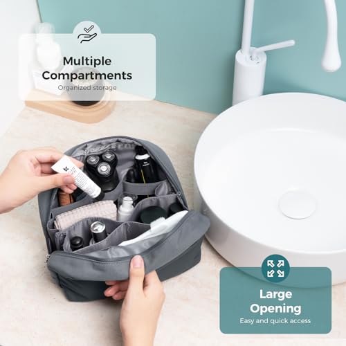 pack all Travel Toiletry Bag, Multi-Compartment Cosmetic Bag, Water-Resistant Makeup Bag for Toiletries, Accessories (Charcoal Gray)