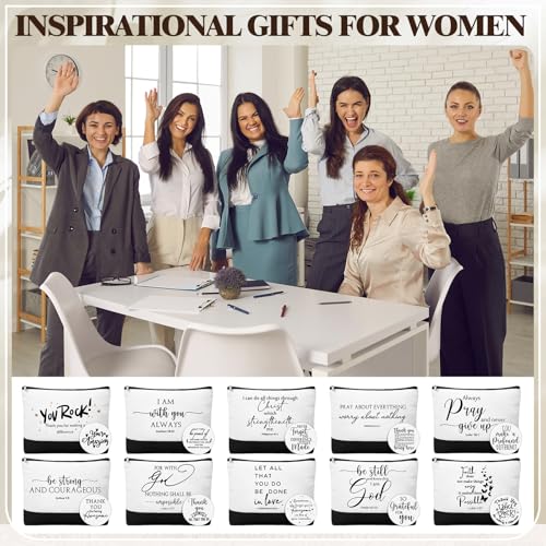 - Inspirational Gifts for Women: you will get 10 makeup bags and 10 compact mirrors, enough quantity to meet your use and replacement needs. Share them with your families, friends, teachers, students, colleagues and more