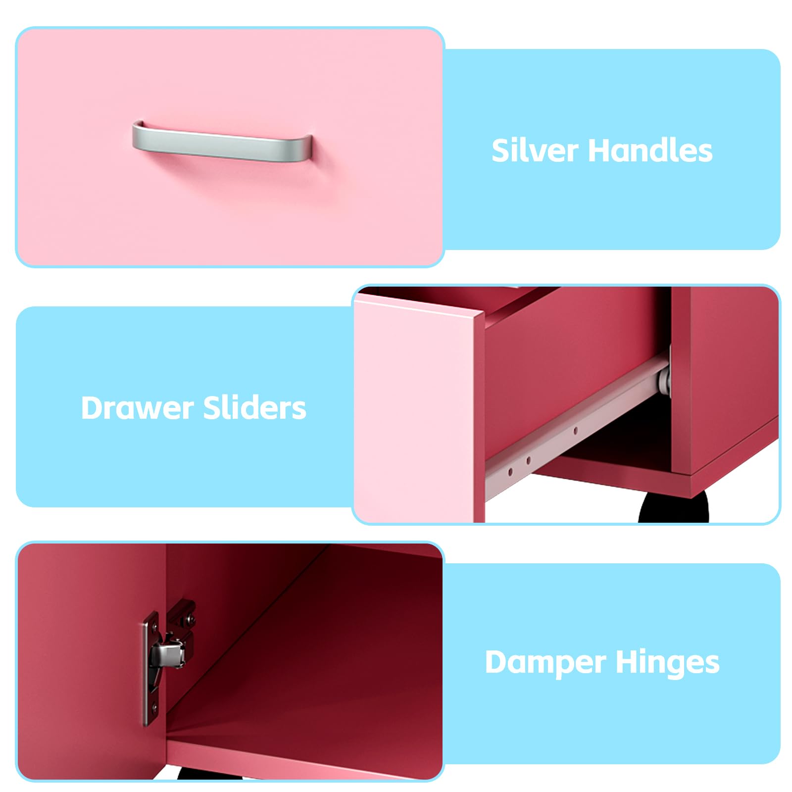 - [AMPLE STORAGE CAPACITY]This Nail Station provides four smooth-gliding drawers with soft-close dampers and a side cabinet to conveniently store all polishes, tools and equipment within immediate reach.