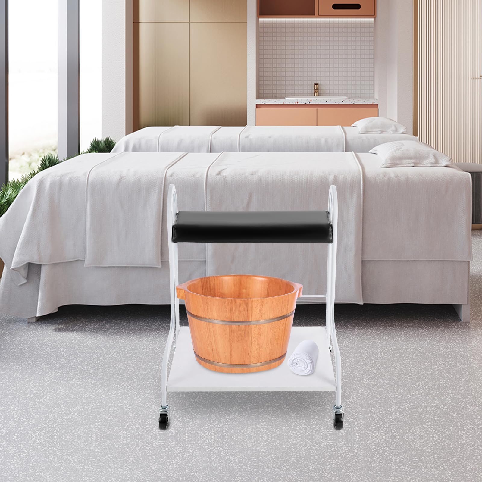- Good Helper: This multi-functional salon trolley can be used not only to hold a foot bathtub, but also to place your feet on a soft cushion for manicures and massages to suit your various needs.