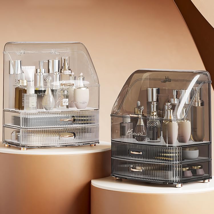 - Visible & Dustproof Design:Features a transparent lid for quick viewing of contents and dustproof protection, keeping your cosmetics, skin care, and jewelry organized and clean on vanity, countertop, or bathroom.