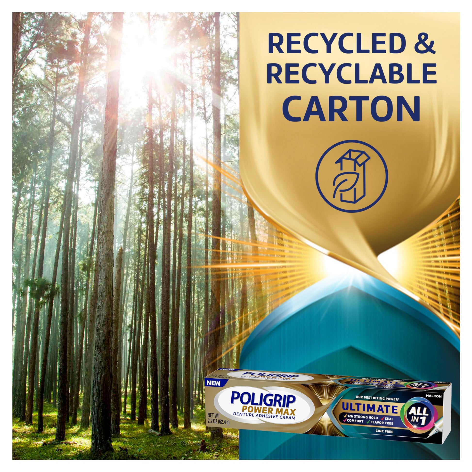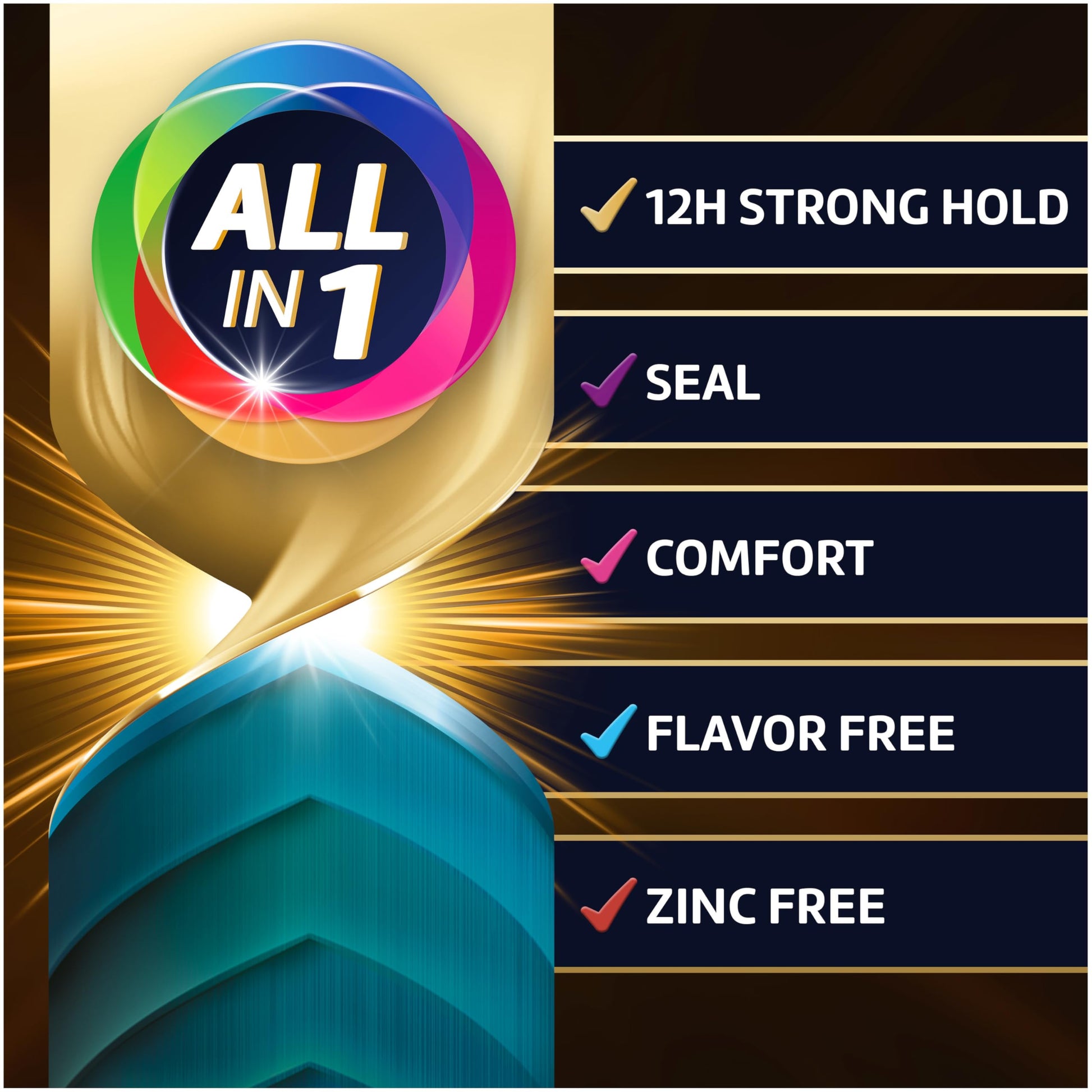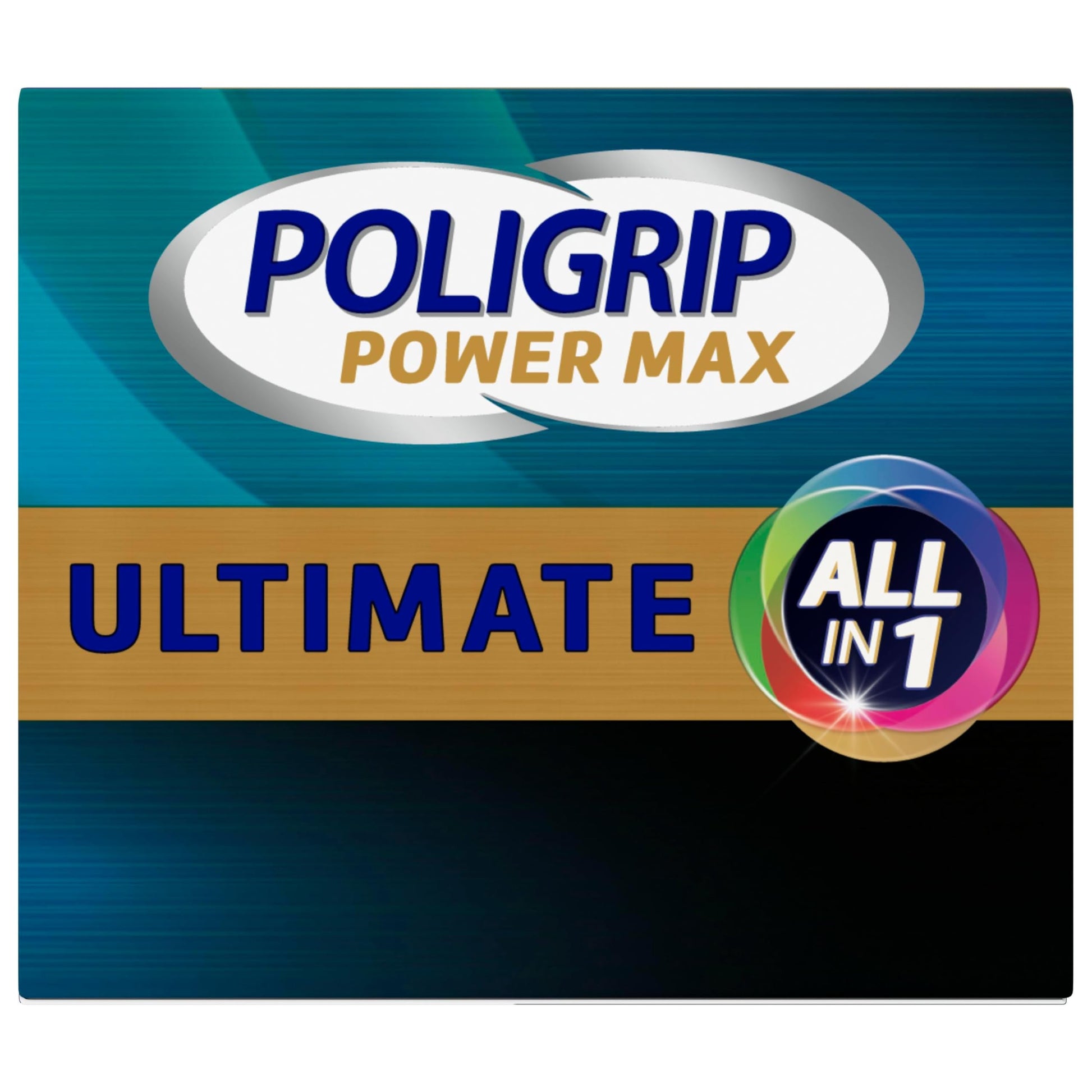 Details: Introducing Poligrip Power Max Ultimate All-In-1 denture adhesive cream. Discover our best biting power technology yet (1). Experience a 263% stronger hold (2) to keep your dentures firmly in place. Go ahead and savor every bite knowing you�ll feel no food after eating (3) with Poligrip�s best biting power (1). Poligrip Ultimate All-In-1 creates a secure, protective layer between your dentures and gums. Its zinc free, flavor free 12-hour hold formula provides clinically proven comfort. The convenient precision nozzle helps you apply with control and precision. Choose Poligrip Power Max Ultimate All-In-1 for Hold, Seal, Comfort and precision nozzle to apply with control. To help maintain good oral hygiene and for the maintenance of your dentures try Polident 3 Minute Cleanser tablets to kill 99.9% of odor-causing bacteria as shown in laboratory tests. (1) Includes Poligrip�s best biting power technology (2) vs no adhesive at 1 hour (3) 75% of people agreed (n=48)