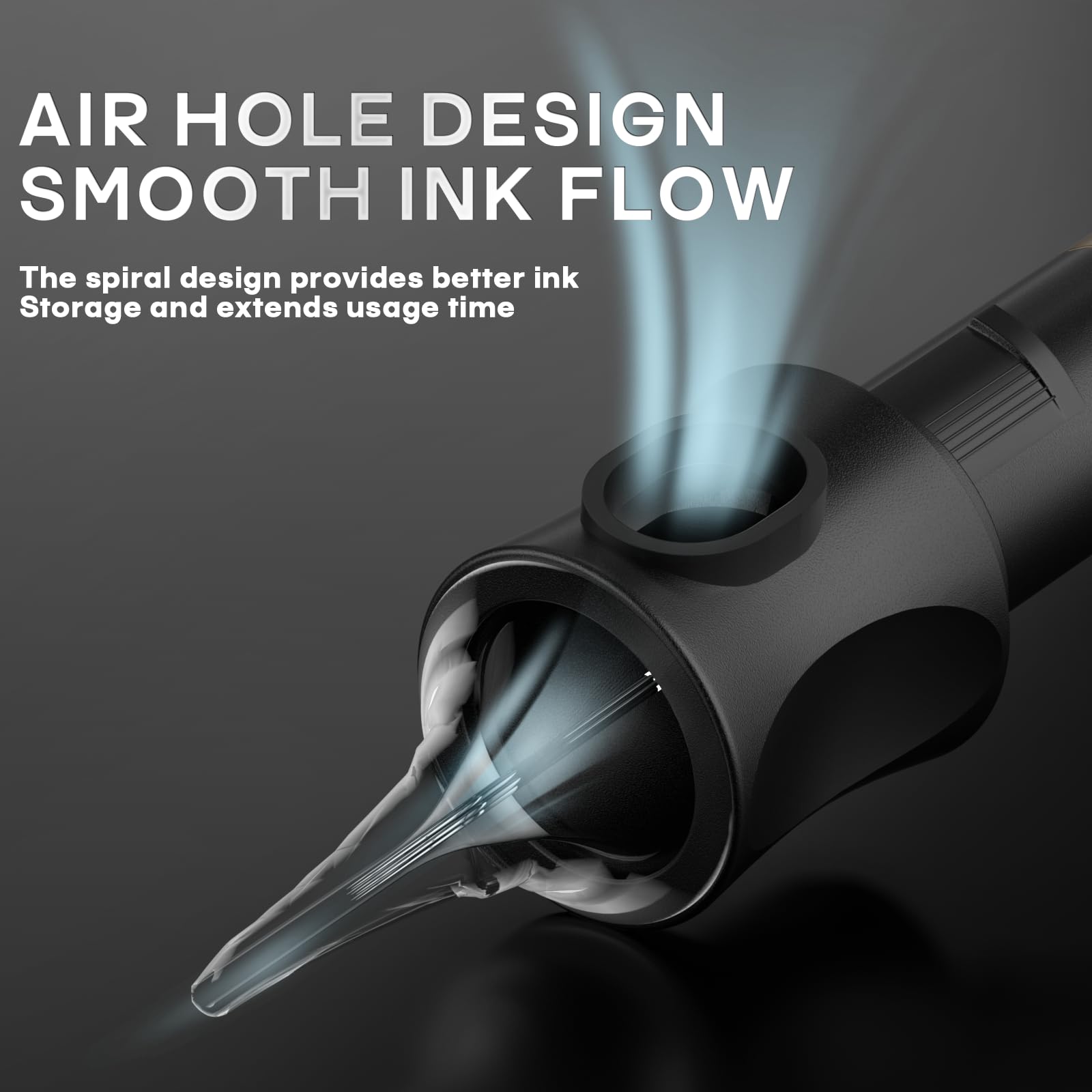- High-Quality: The cartridge needles are made of high material PVC and stainless steel. Safe and healthy,With a high elasticity rubber plug connection, preventing tattoo ink flow back.The unique spiral design at the nozzle can store more ink, improve ink fluidity, and prevent ink leakage Protect your tattoo machine. Improve your tattoo experience.Each needle is disinfected and vacuum packed to ensure the safety of your tattoo