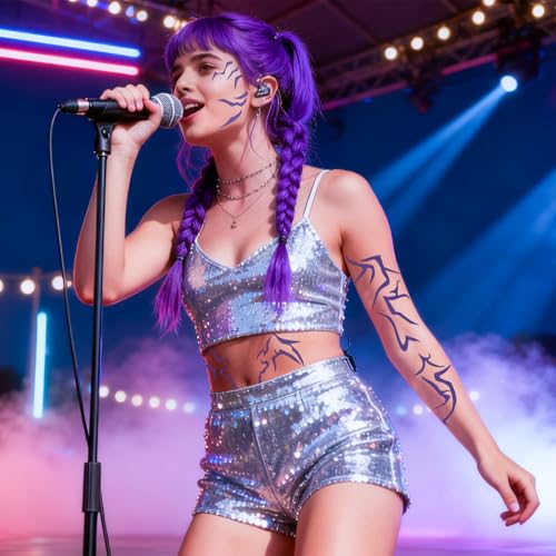 Purple Temporary Patterns Tattoo - Anime-Inspired Temporary Tattoo Stickers Waterproof | Heat Transfer | Easy Apply & Remove, High-Detail Cosplay Body Art for Halloween, Conventions, Party Makeup