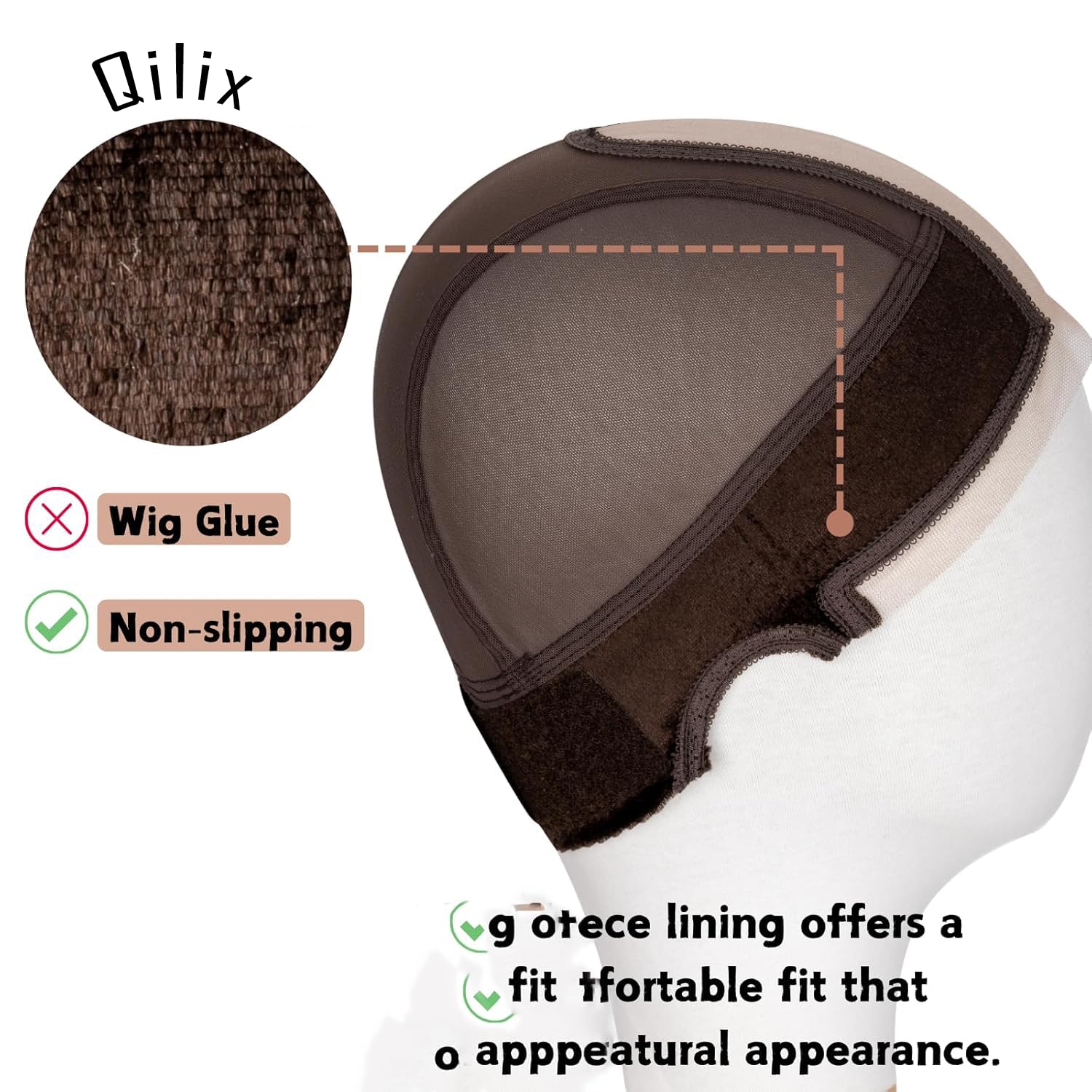 Qilix Women Lace Wig Grip Cap,Adjustable & Reinforced Lace Wig Grip Band by Hairline, Comfortable and Secure Glueless Velvet Headband, (light'brown black) (Brown)