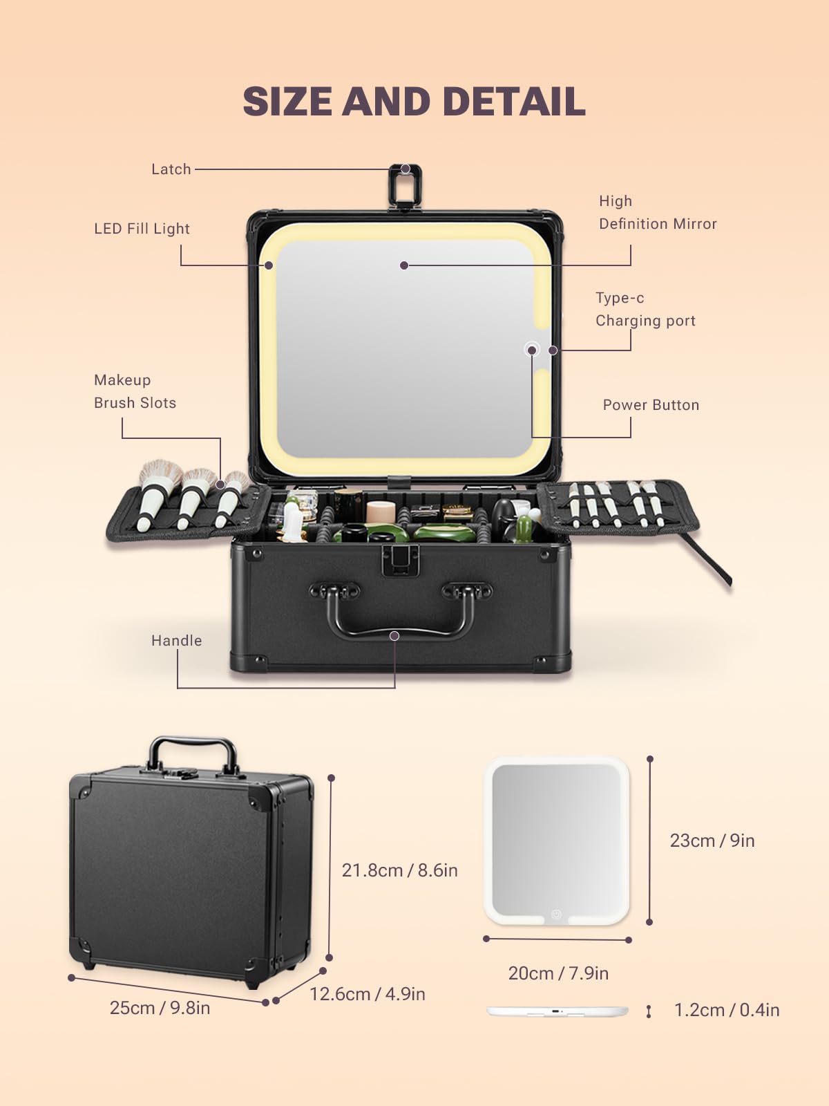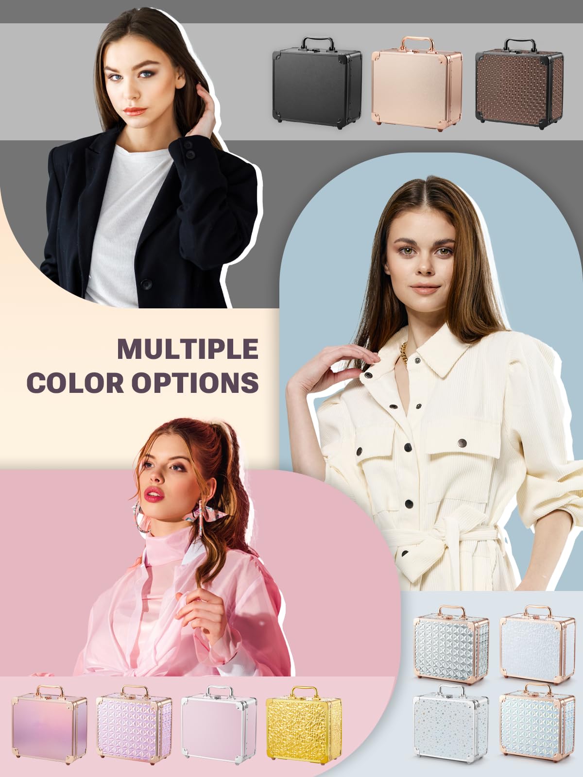 - Professional Hard Makeup Travel Case: Measuring 9.6x8.3x4.9 inches, this portable case is ideal for all makeup artists. Made with ABS aluminum and metal-reinforced corners for durability, it features a latch with a quick rebound lock