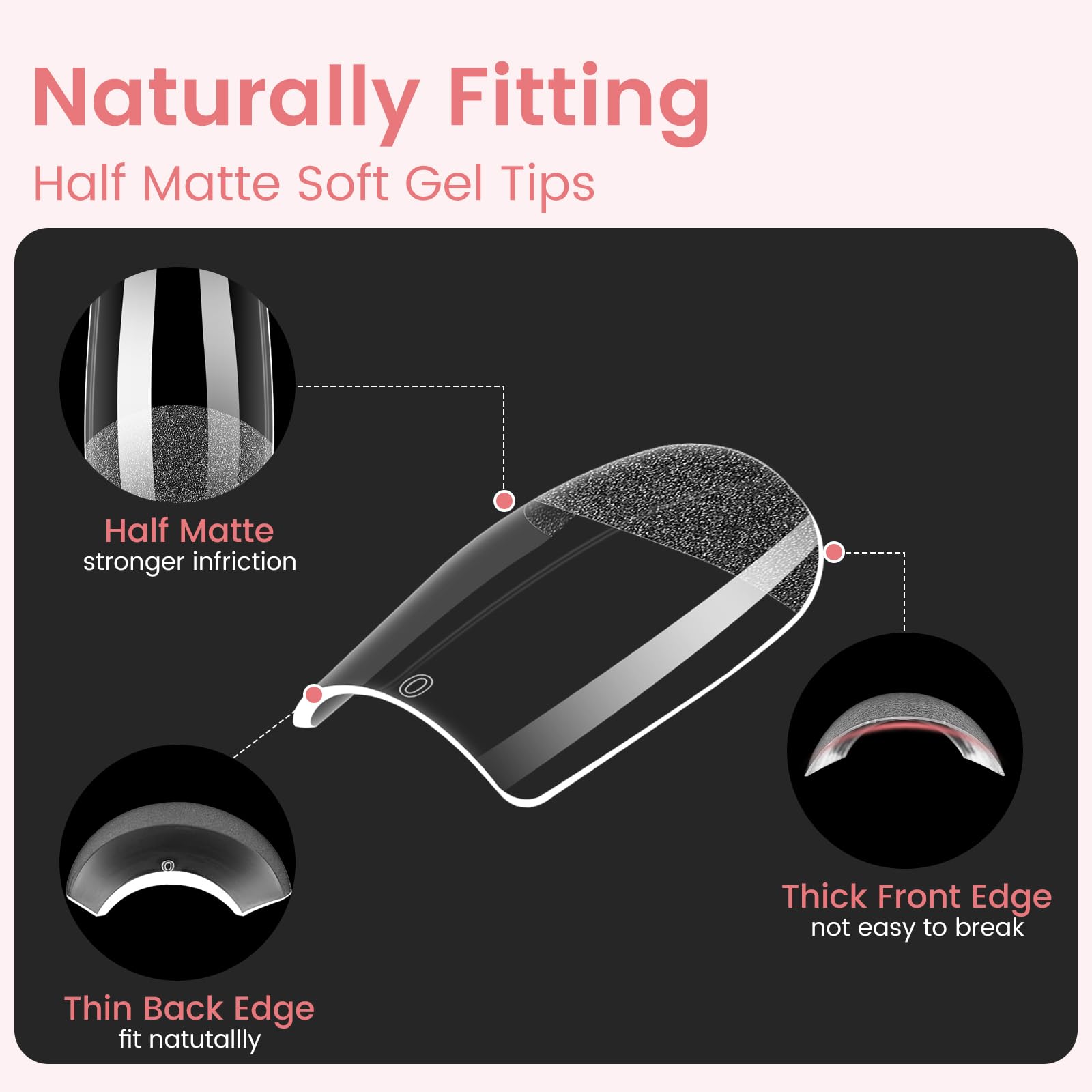 - Traceless & Soft Gelly Tips: Made from a soft gel material, the flat no c curve nail tips leave no trace even when bent. With smooth edges and a shallow curve, they fit snugly onto the nail bed, providing a comfortable wear and great color application. The tapered square nail tips are less likely to lift or expose, ensuring a seamless and natural look.