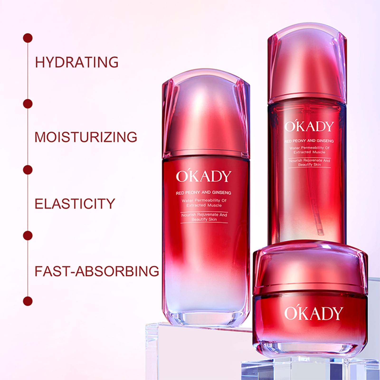 - Suitable for all skin types, and the skin care kit contains PAEONIA SUFFRUTICOSA ROOT EXTRACT, PANAX GINSENG ROOT EXTRACT, LIN LAN RUN LO, ECTOIN, enhancing skin tone, watery shiny, stabilize skin condition, lock in moisture.