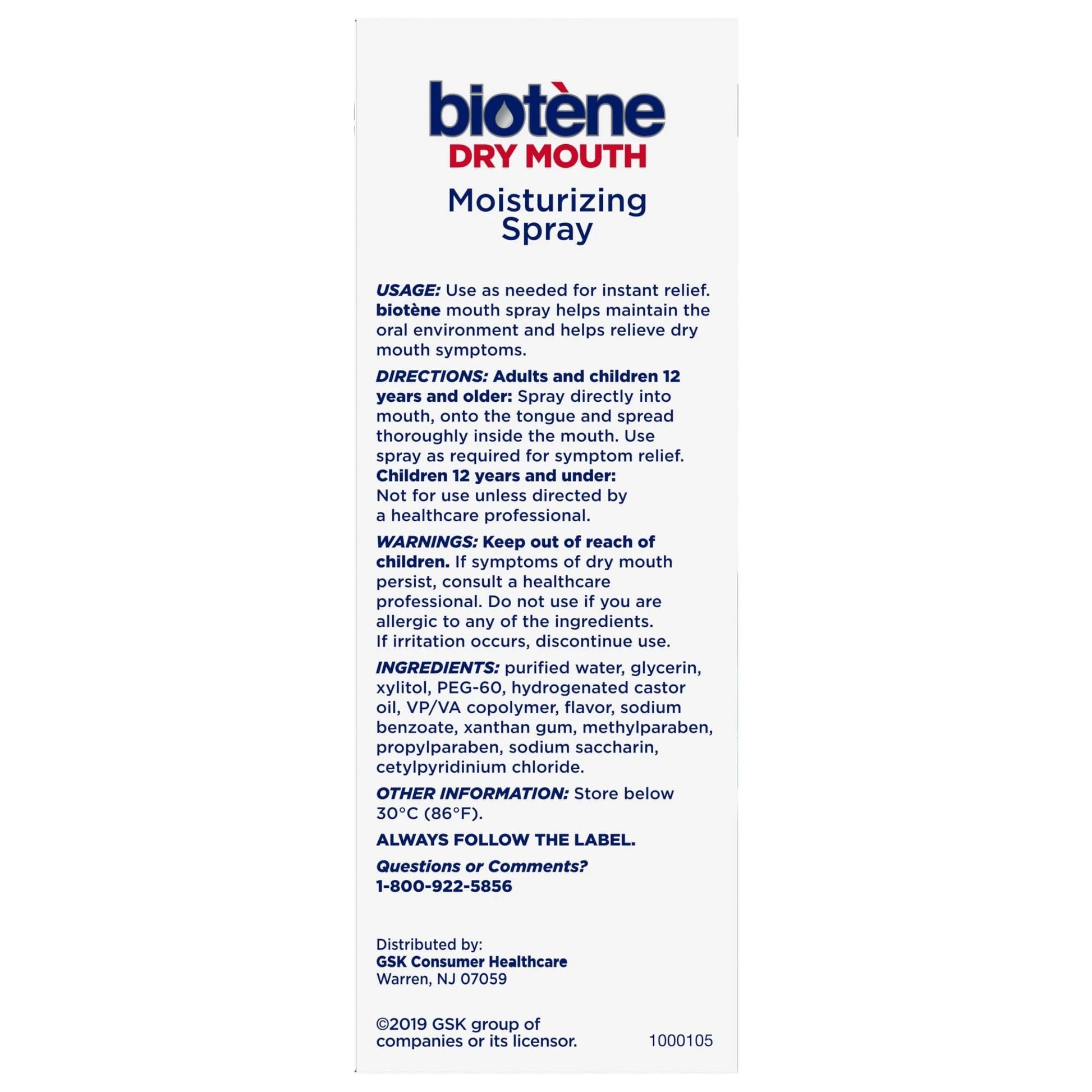 - Dry Mouth and Fresh Breath Moisturizing Spray, Gentle Mint, 1.5 oz, for Children and Adults (BlOTENE SPRAY)