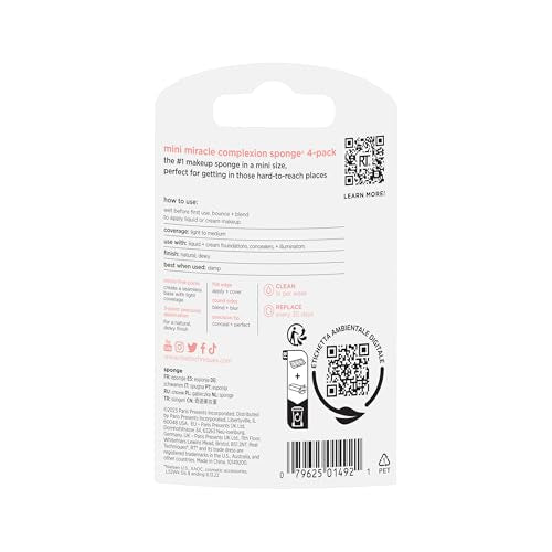 Real Techniques Mini Miracle Complexion Sponge 4 Pack, Small Makeup Blending Sponges, For Foundation & Concealer, Mini Size for Under Eyes & Touch-Ups, Travel Friendly, Natural Makeup, Latex-Free