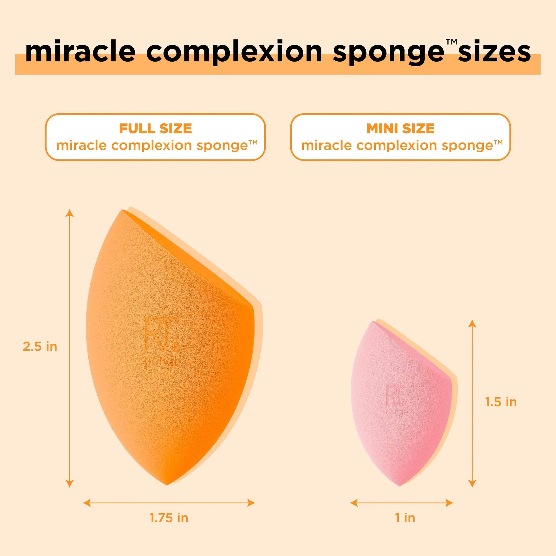 Details: The Real Techniques Mini Miracle Complexion Sponges are our same best selling makeup sponges but in a mini size, so they are perfect for getting into those hard-to-reach places. These mini makeup blending sponges offer a natural, dewy finish, and their micro-fine pores help create a seamless base with light to medium coverage. Real Techniques’ mini makeup sponge works best with liquid and cream makeup products such as foundation, skin tints, and illuminators. This makeup sponge has RT's unique 3-point application technique that makes blending products seamless. First use the flat edge of the makeup blender sponge to pack on product, then the precision tip to conceal, and finally, blend it all out with the rounded side. Use it damp for extra dewiness and let that inner glow shine through. The Miracle Complexion Sponge is easy to clean using our Real Techniques Brush + Sponge Cleansing Gel. It’s also 100% cruelty-free, vegan, and designed with revolutionary latex-free foam technology. We are Real Techniques, the brand of choice for all makeup users, no matter your level of expertise. Created in collaboration with leading makeup artists, we aspire to take the mystery out of choosing beauty tools so you can focus more time on putting your best face forward one blend at a time. From full makeup looks, to quick beauty hacks, RT brushes + sponges are exceptionally high quality for professional looking results every time. BUT… don’t be fooled by our affordable prices, RT tools are award-winning + purposefully designed because that’s what you deserve. Quality without compromise.