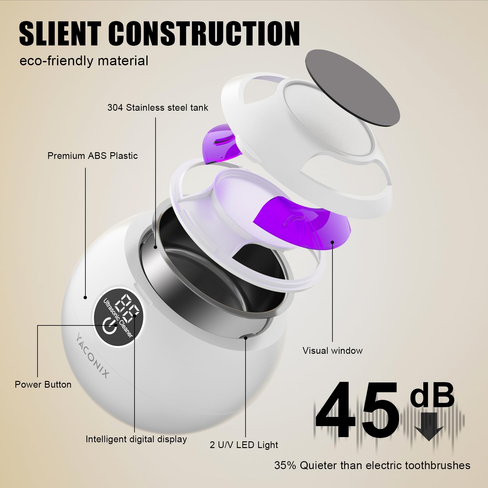 - 【Reliable Clean LED Light Design & IPX6 Waterproof】Most of retainer cleaner machine on the market are choose the top LED Light design. after repeat using, the wires will be fatigued and due to power failure. our ultrasonic retainer cleaner machine set the clean light inside the dental cleaning pod. with the newest IPX6 waterproof technology and waterproof air cushion, the service life of our product is 2-3 years longer than other retainer cleaner machine. at the same time, effectively cleaning different angles of the blind spots of the dentures,braces,rings, and jewelerys.