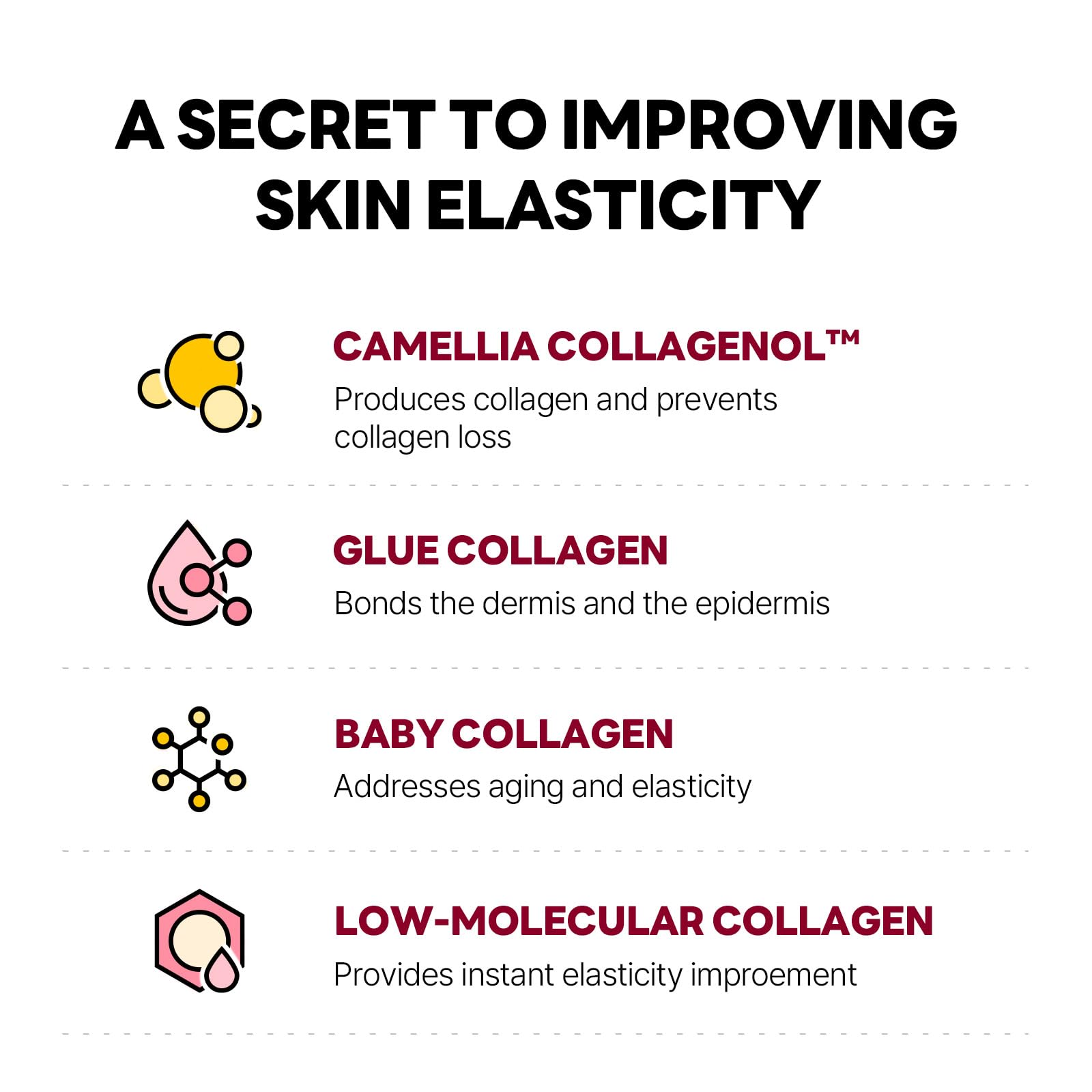 - [REVITALIZES & HYDRATES] Enriched with active ingredients from Jeju Camellia, multiple sizes of collagen, and peptide fibers, this double chin strap leaves your complexion looking lively and radiant. The perfect complement to a collagen facial mask for an intense skincare routine.