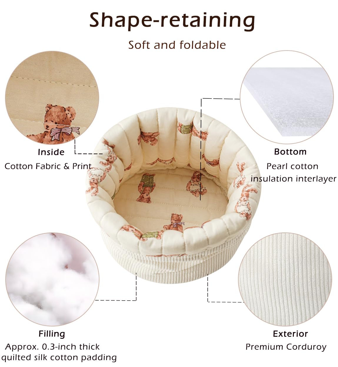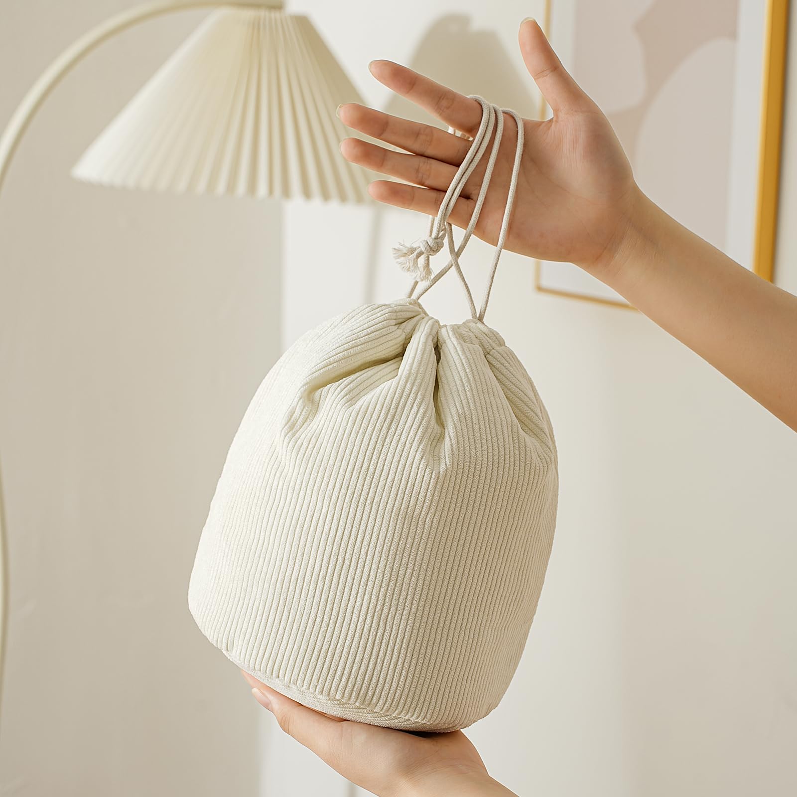 2. The exterior of the drawstring bag is made of high-quality corduroy fabric, while the interior features premium quilted cotton, which is lightweight, durable, soft and easily foldable.