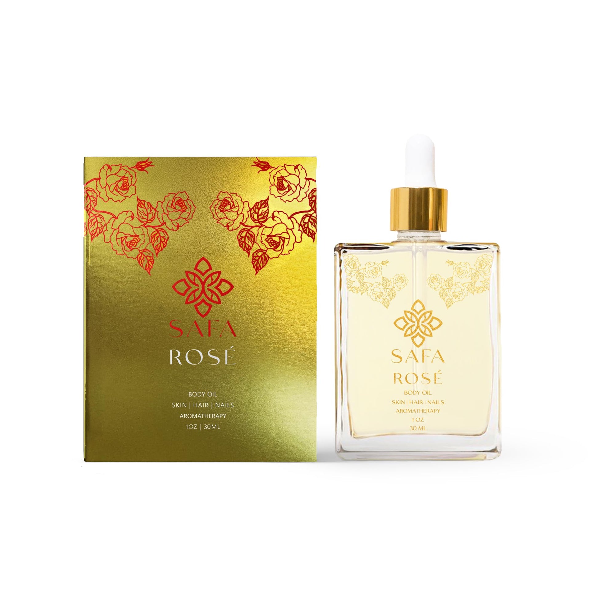 - SAFA Rosé Oil is an organic blend of superfood oils that delivers firm, smooth, glowing skin, while revitalizing the skin barrier. Dried USDA organic Indian Rose petals are infused within the oil, and the aroma of the highly coveted Bulgarian Rose essential oil promotes energy and vitality, soothes the mind and uplifts the mood. This multi-use oil rejuvenates the body inside and out.
