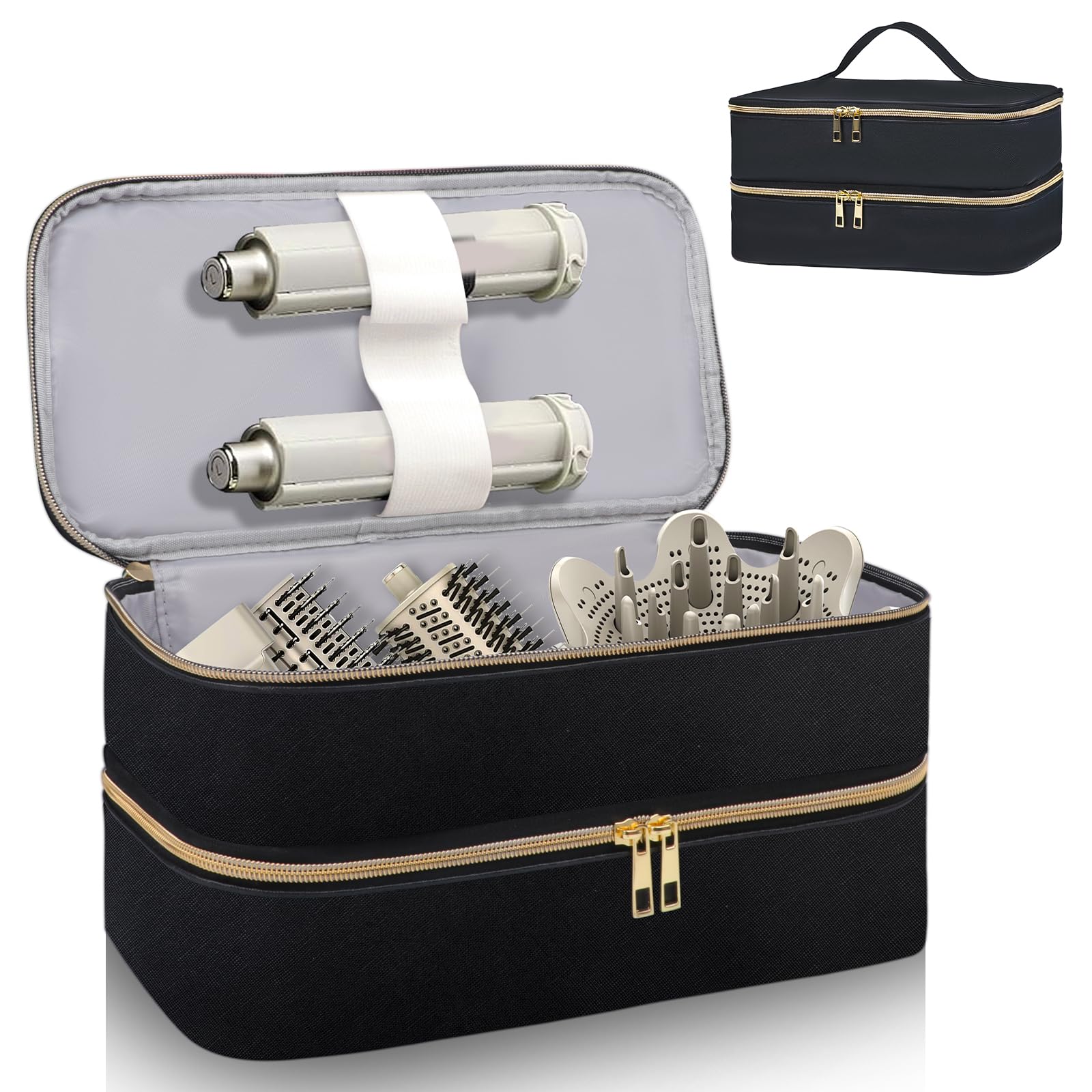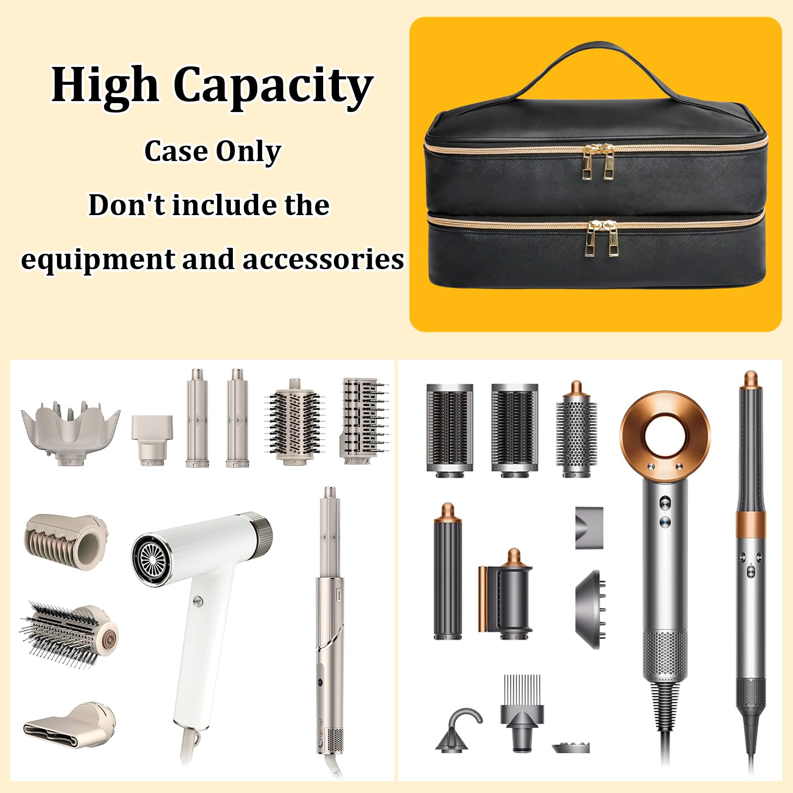 Sambois Travel Carrying Case for Shark Flex Style, Double Layer Storage Case for Shark SpeedStyle Hair Dryer Attachments, Waterproof PU Leather Organizer Bag for Shark Flexstyle Airwrap Styler (Black)
