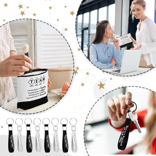 Sanwuta 48 Pcs Canvas Cosmetic Bag Bulk Appreciation Gift Inspirational Canvas Makeup Bags Keychains Set Christmas Party Favors for Teacher Students Employees Coworker Women (Team)