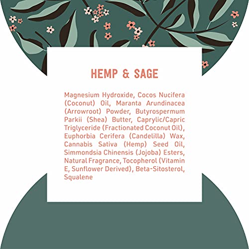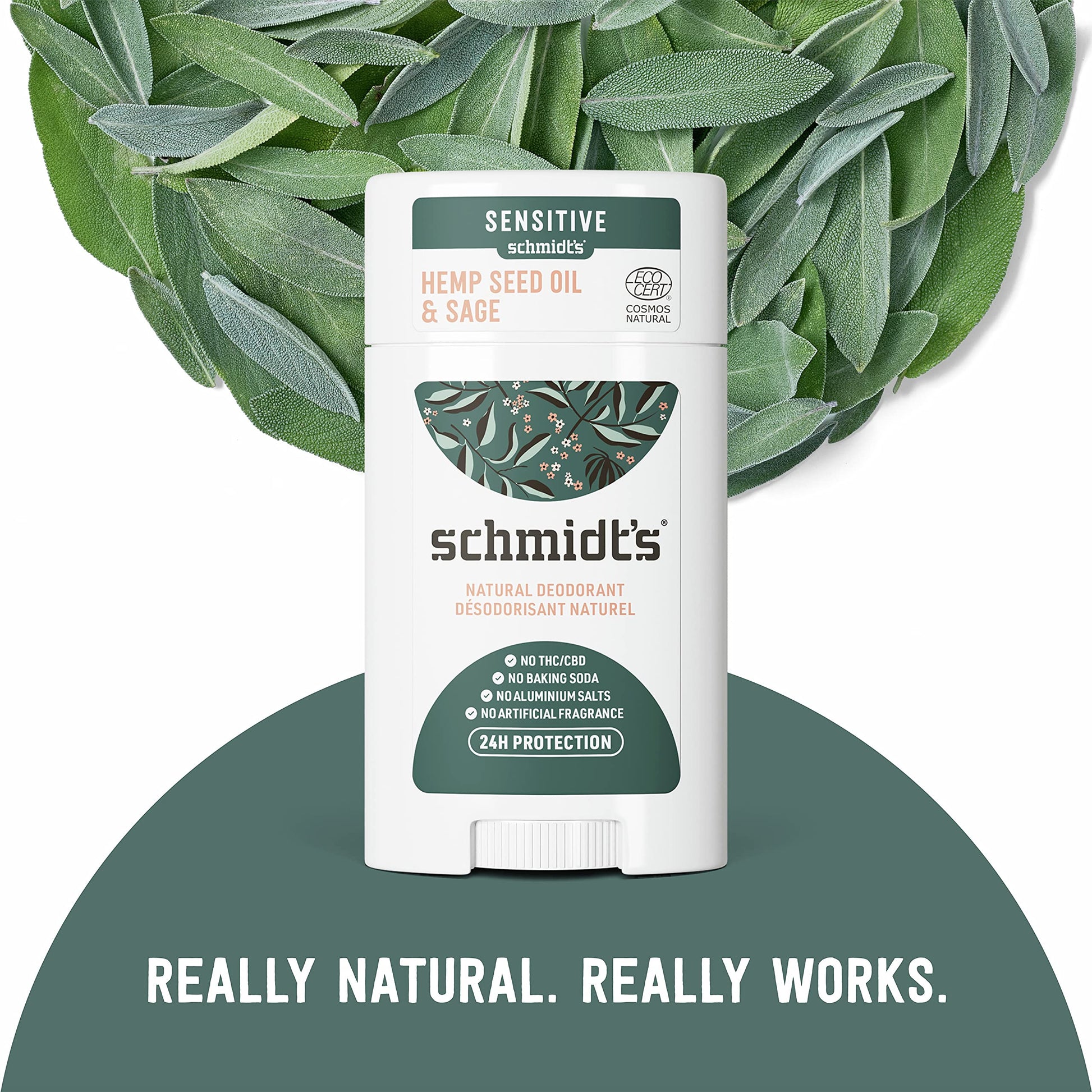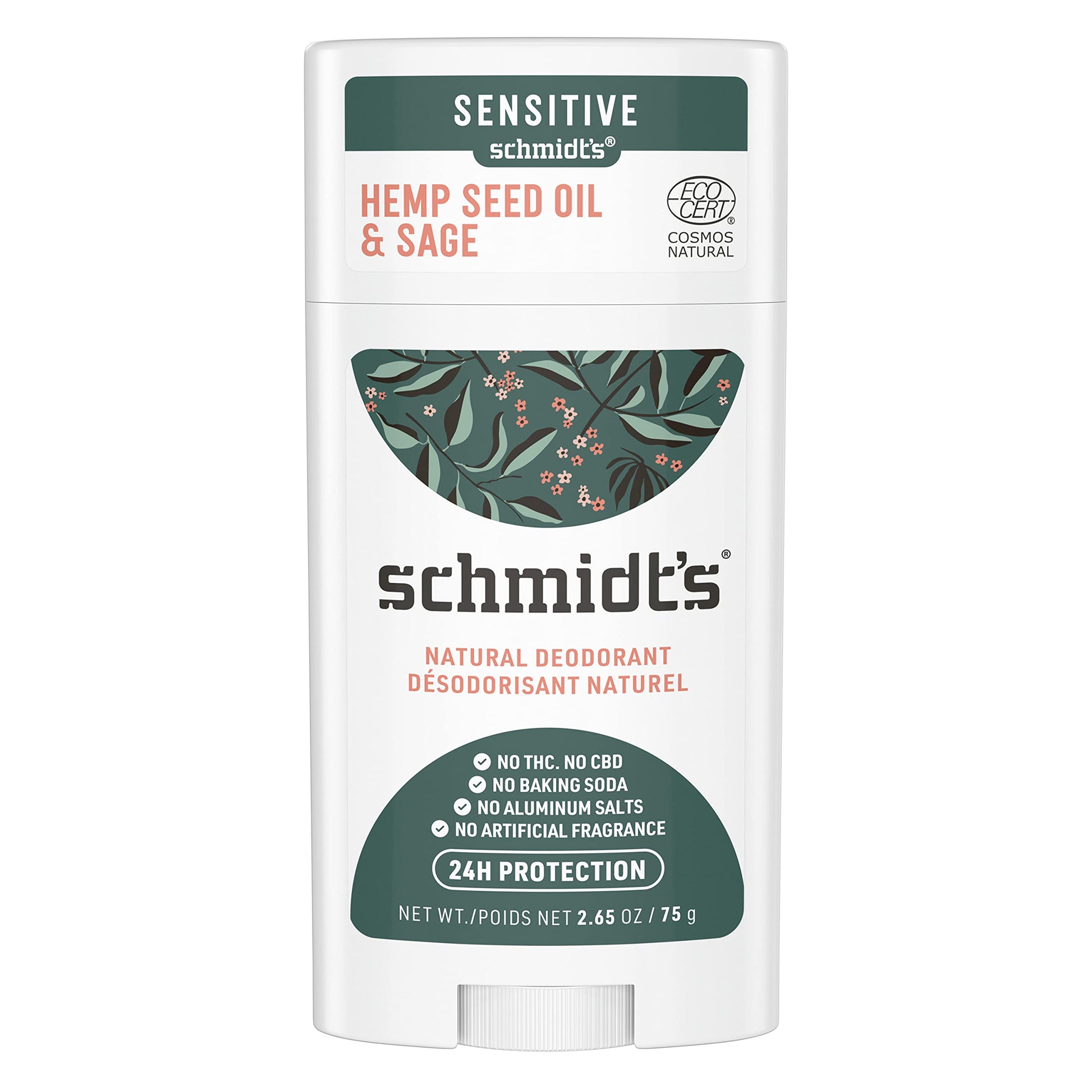 Schmidt's Aluminum Free Natural Deodorant for Women and Men, Hemp Seed Oil and Sage for Sensitive Skin with 24 Hour Odor Protection, Vegan, Cruelty Free, 2.65 oz