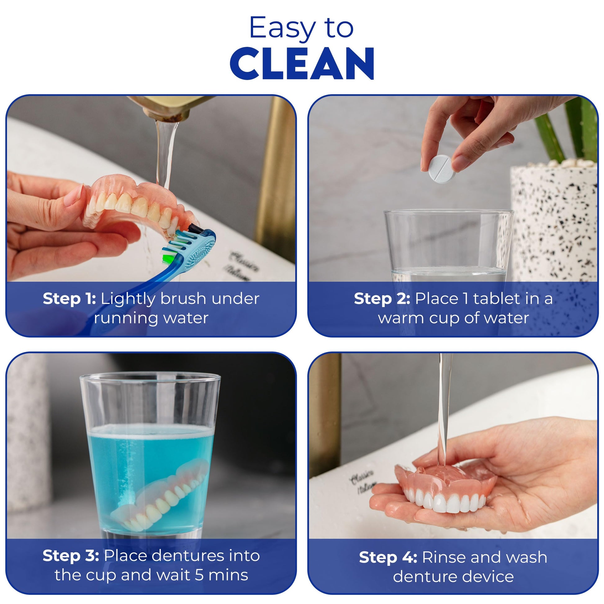- EASY & CONVENIENT TO USE – Just drop one tablet into a cup of warm water let it fully dissolve and place your dental device inside. For best results, soak for 10 minutes daily or overnight for a deep clean. Regular use helps prevent buildup, cloudy film, plaque, and food particles, keeping your dental appliance fresh and spotless with minimal effort