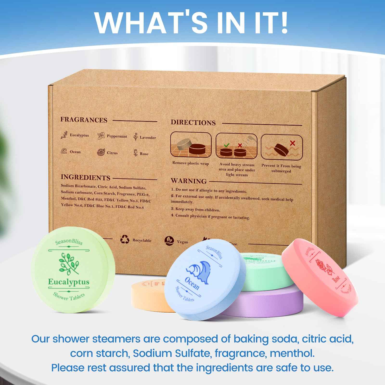 - Enhance the Showering Experience: SeasonBliss Shower Steamers add comfort and enjoyment to your shower with a burst of captivating scent that gives each shower an extra boost of pleasure