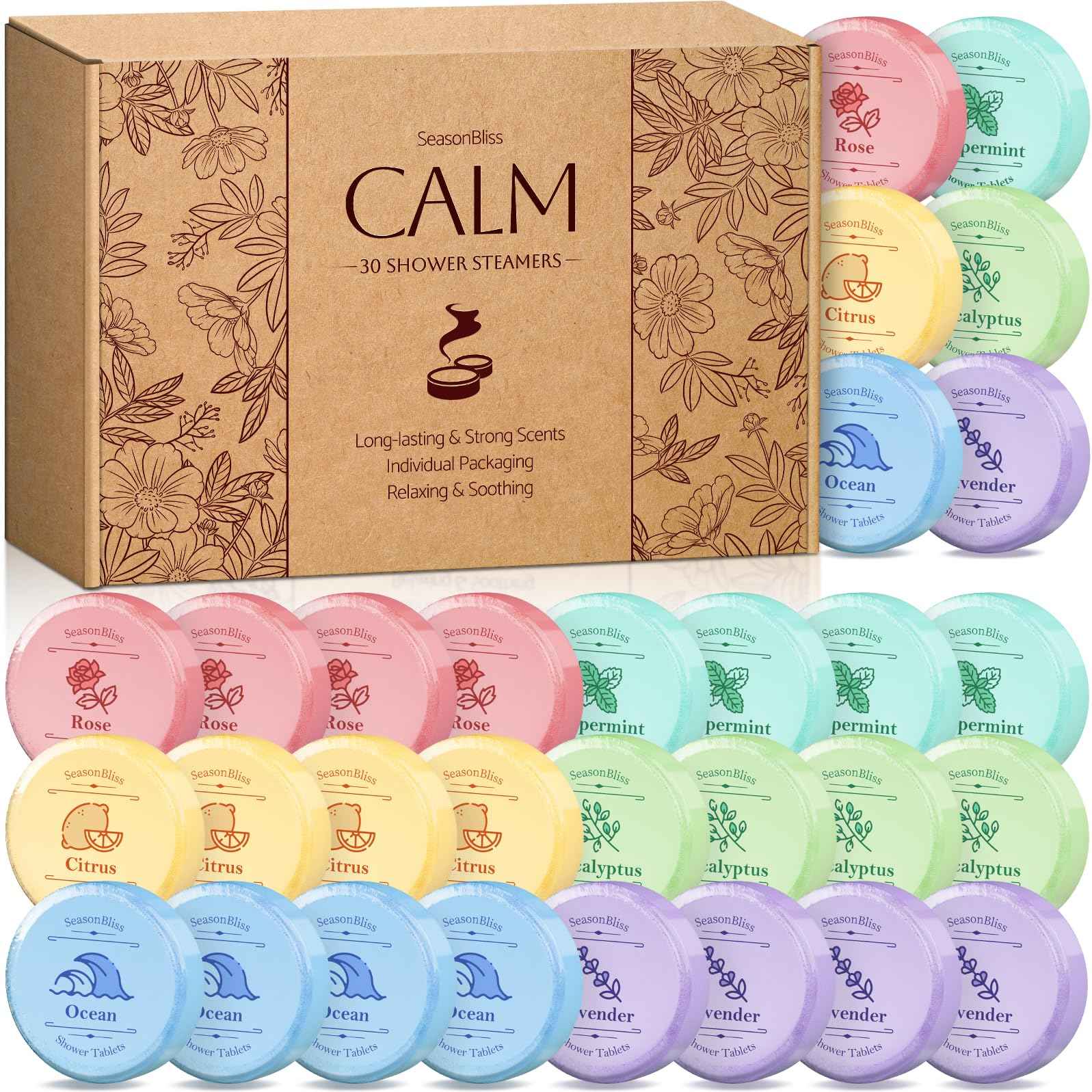 Shower Steamers 30 PCS with Individually Wrapped, Shower Bombs for Women with 6 Rich Scents, Rose Peppermint Citrus Eucalyptus Ocean Lavender, Christmas Birthday Mother's Day Present for Mom Wife Men