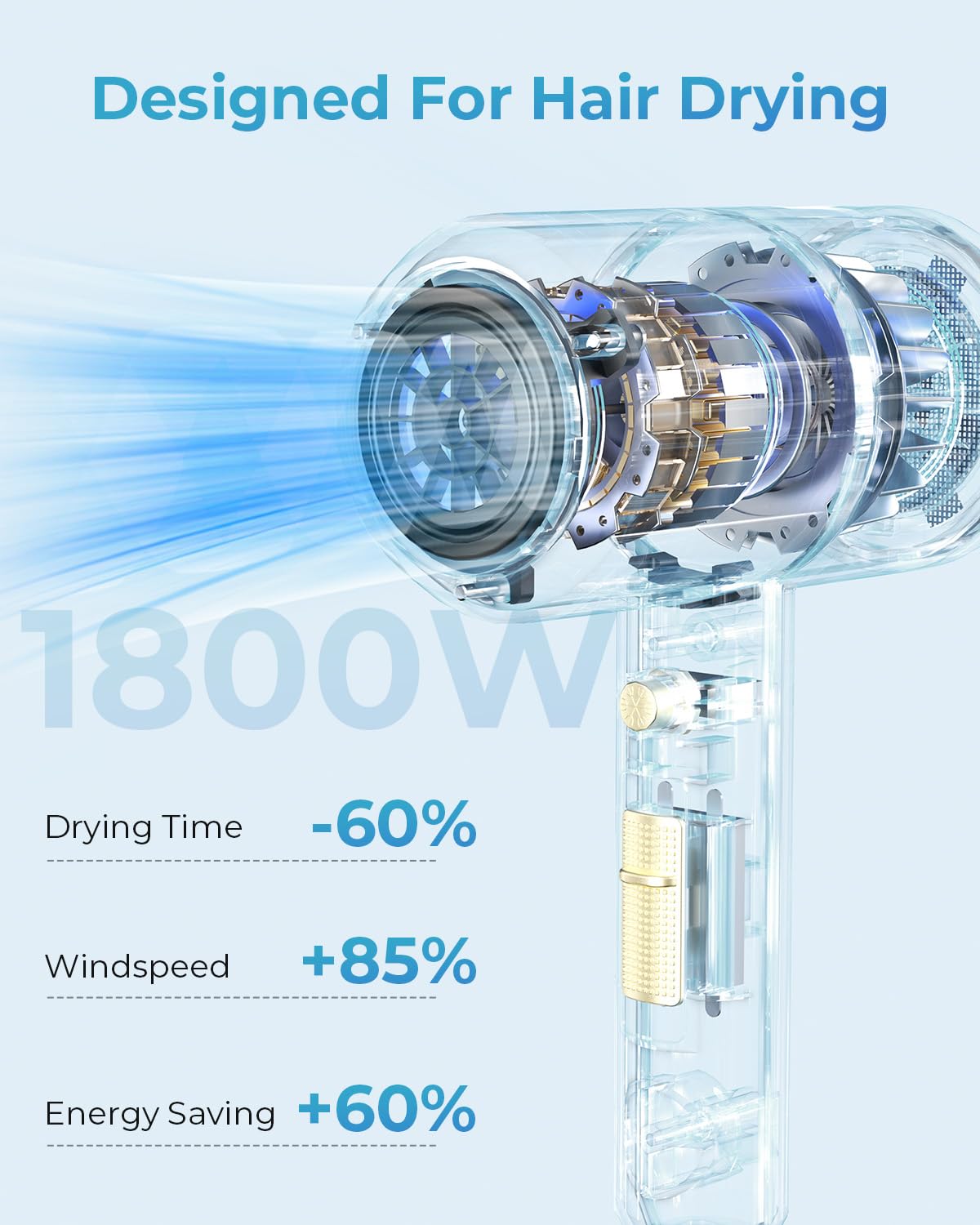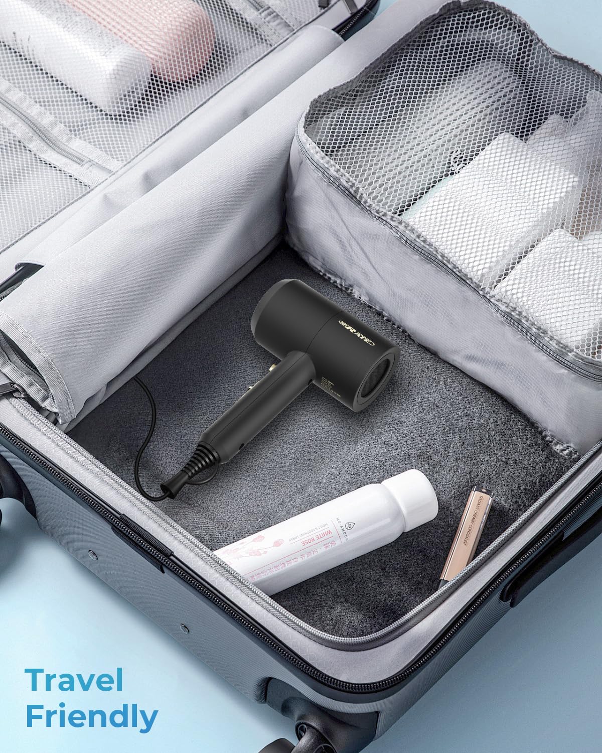 SHRATE Lightweight Ionic Hair Dryer with Diffuser - Powerful 1800W Blow Dryer for Fast Drying - Professional Low Noise Mini Hair Dryer for Travel, Gifts, Hair Styling (Black)