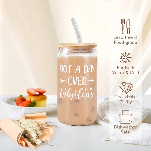 - High-quality Glass Cup: Aside from the Premium Spa Kit, our gift box for women also comes with a 16oz glass bottles, sturdy, lightweight, lead-free & BPA free. The quote "Not A Day Over Fabulous" on the glass adds a personal touch, suitable for keep cold & warm beverages (¡Â80 degrees Celsius) for wine, coffee, tea, milk, juice, water etc. making it a perfect gift for her, best friends, moms, wife, girlfriends, sisters, daughters, grandma, aunt, coworkers or teacher