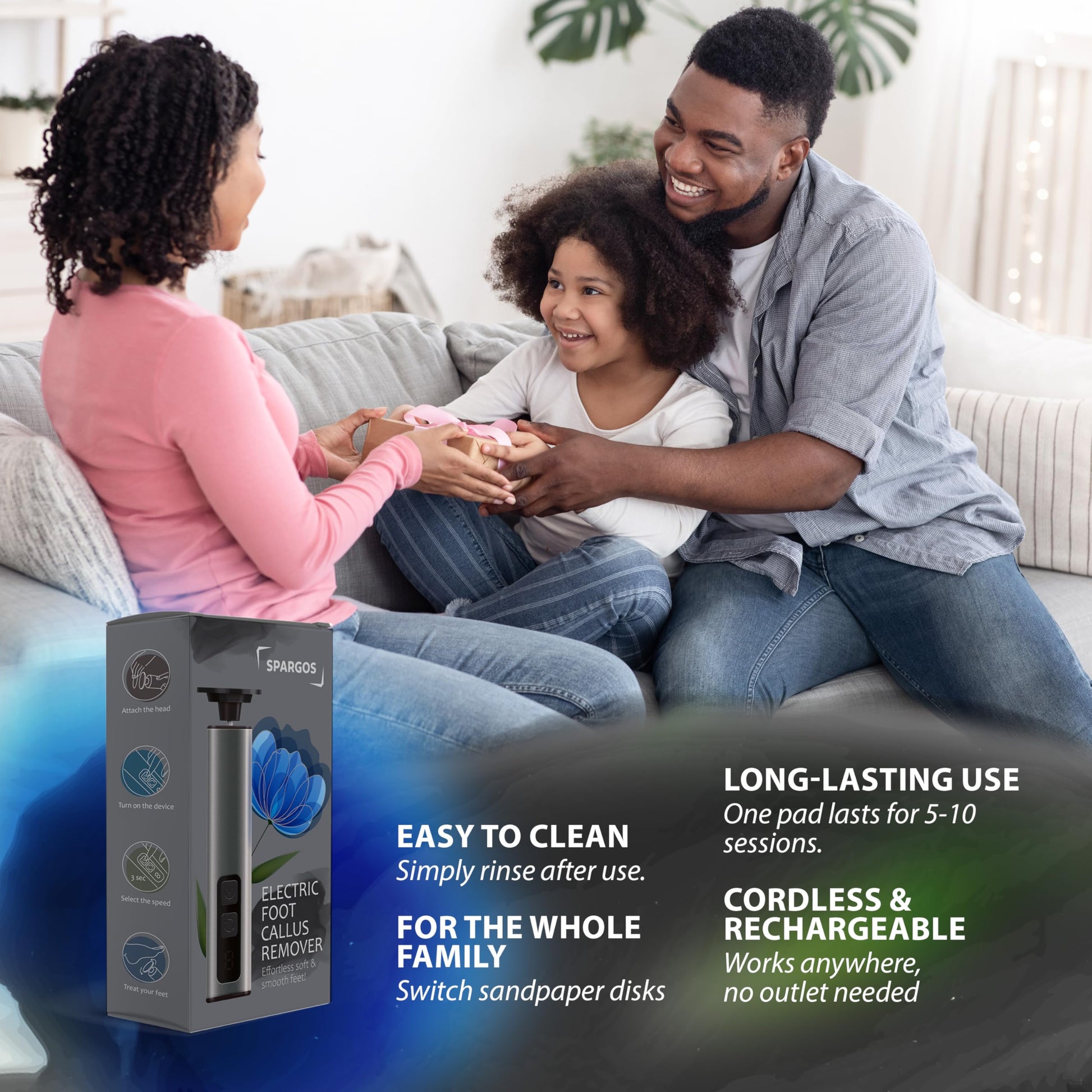Spargos Electric Foot Callus Remover Rechargeable - Black Electric Foot Filer with 9 Speed Settings, Type-C Charging, and 60 Sanding Discs for Smooth Skin - Callus Remover for Feet