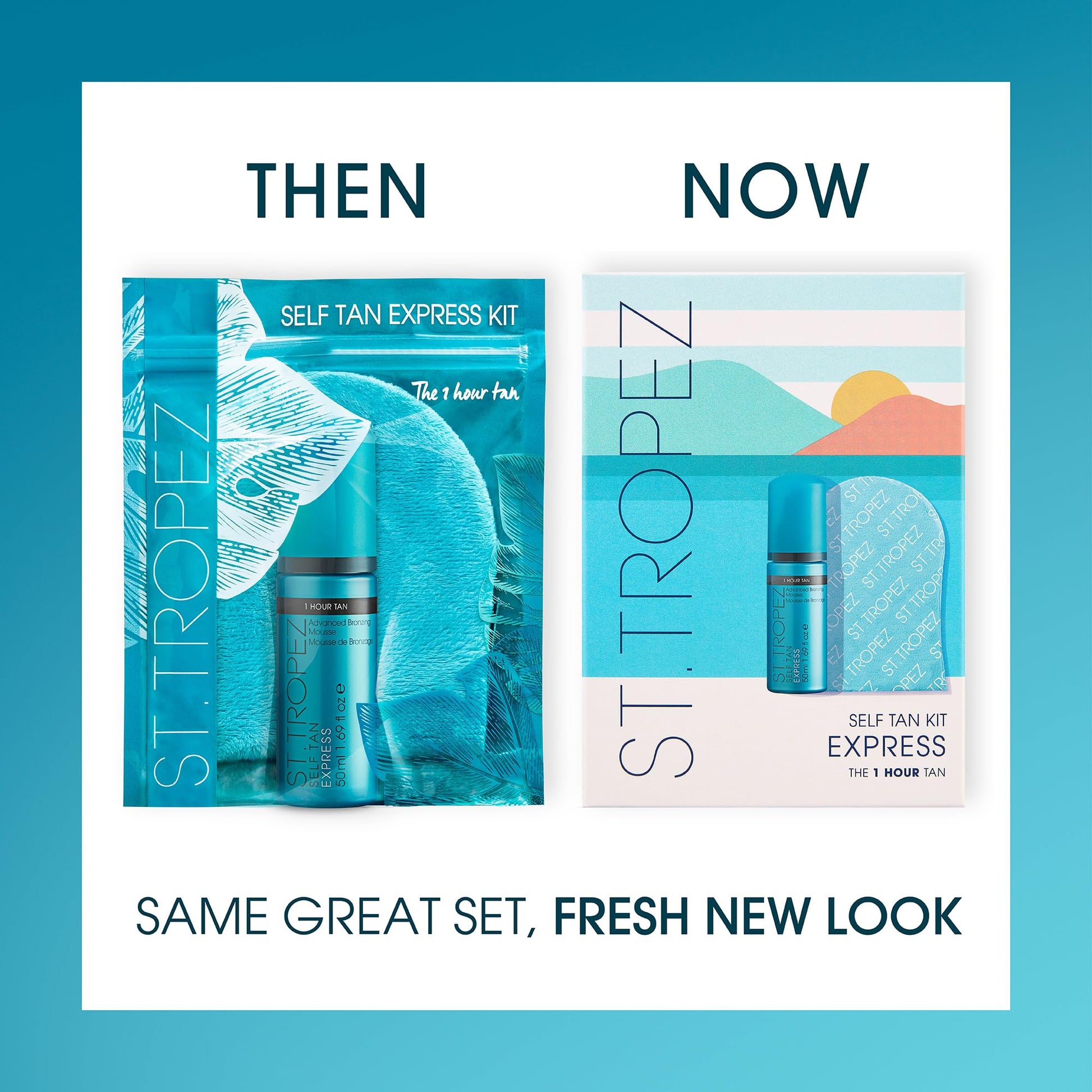 - THE 1 HOUR TAN St.Tropez Express Mini Kit is your fast-track ticket to endless summer whilst on-the-go. No matter where life takes you, our bestselling, customizable glow will have you sunkissed in as little as 1 hour. This kit contains our award-winning Express Bronzing Mousse in a travel-friendly size and our Luxe Velvet Applicator for a flawless finish, every time.