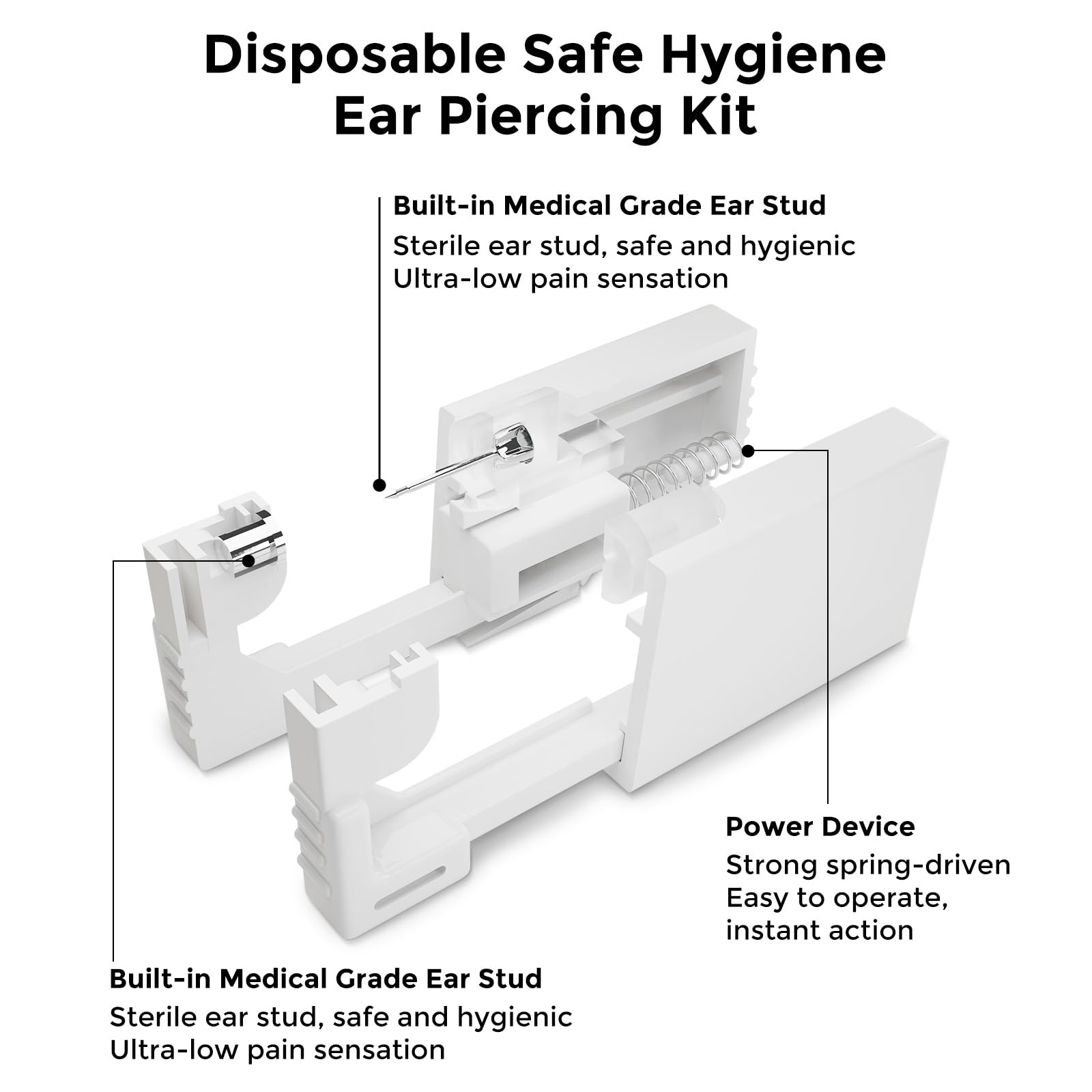 - [Hypoallergenic Surgical Stainless Steel Materials] Our professional ear piercing kit made in surgical stainless steel materials, all hypoallergenic disposable ear piercing kits are made in 100000 grade clean room, and individually sealed package
