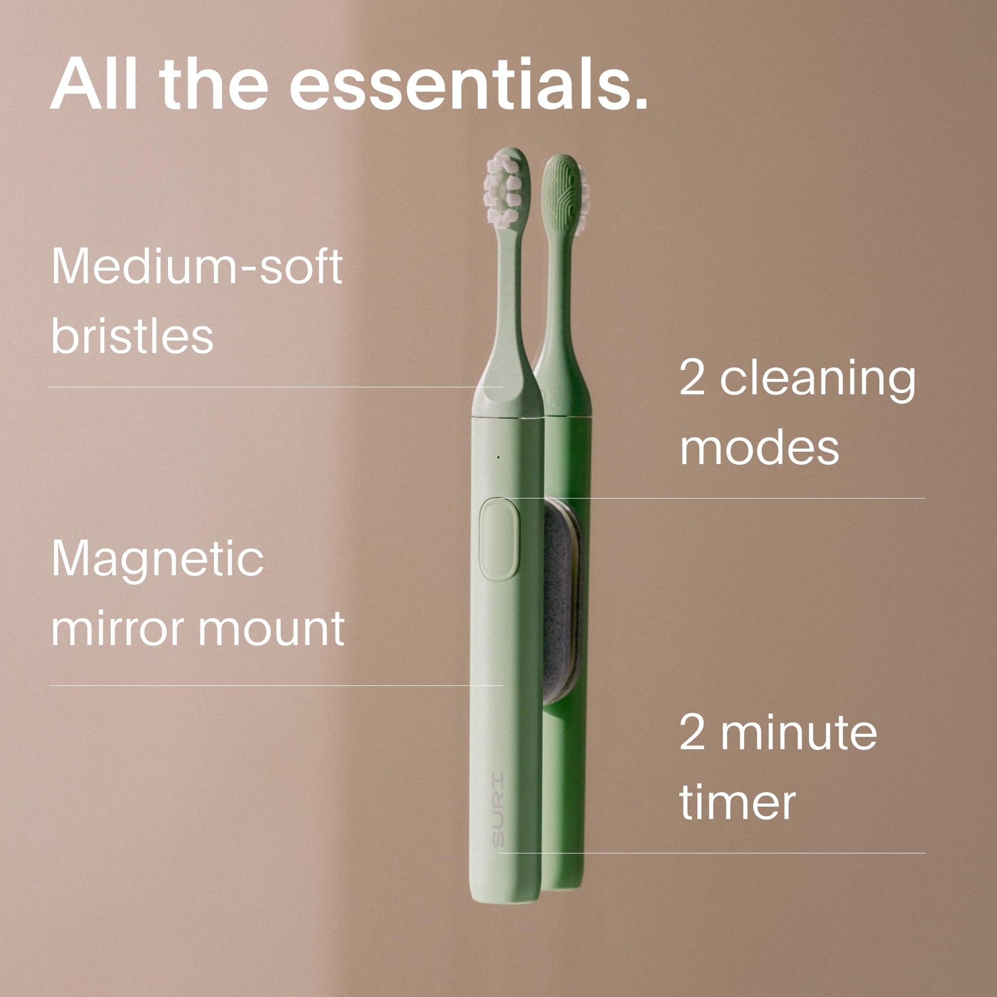 - DESIGNED IN CALIFORNIA - Slim yet powerful. SURI's award-winning sonic toothbrush is 1/2 the size of a standard electric tooth brush and delivers a professional sonic clean by vibrating over 33,000 times per minute
