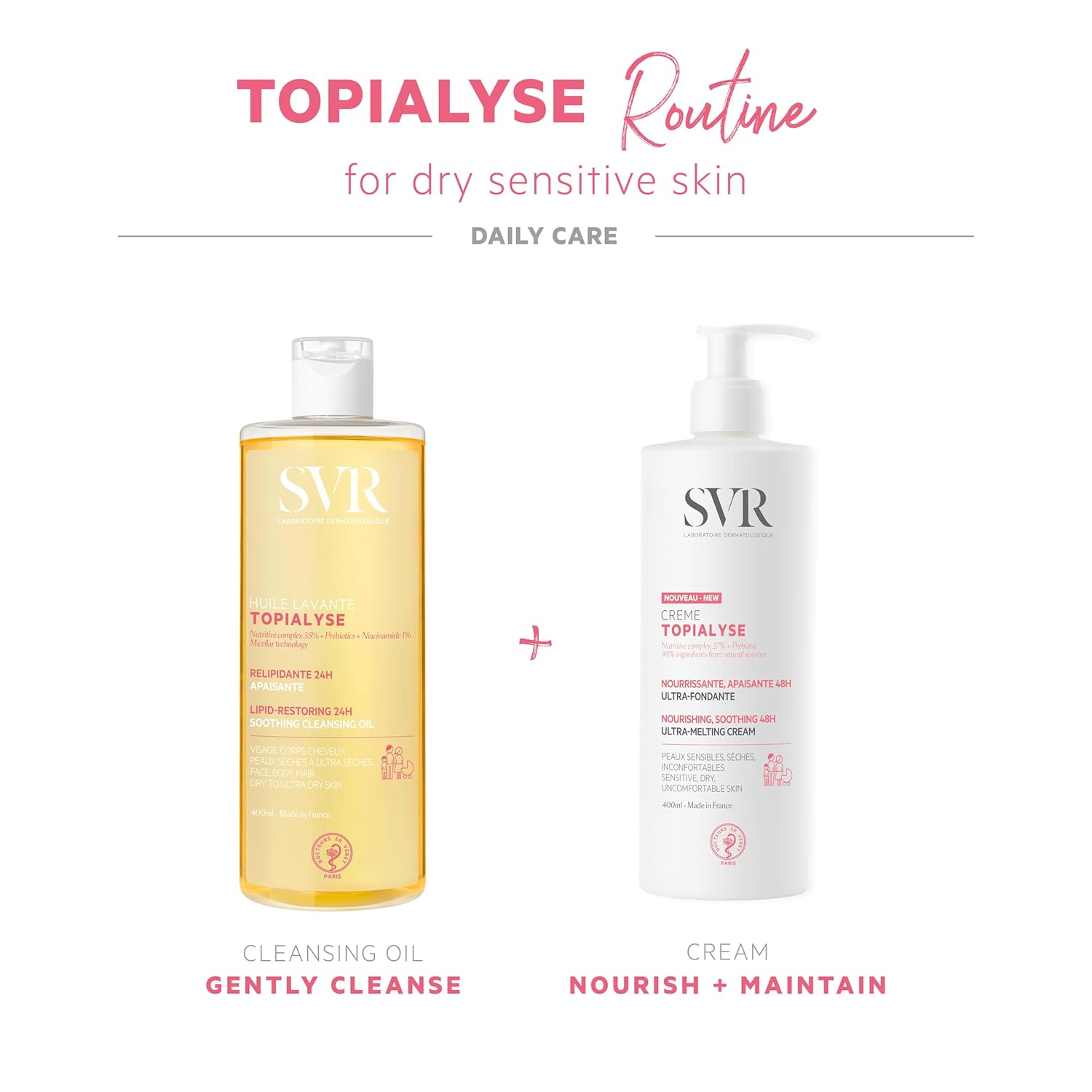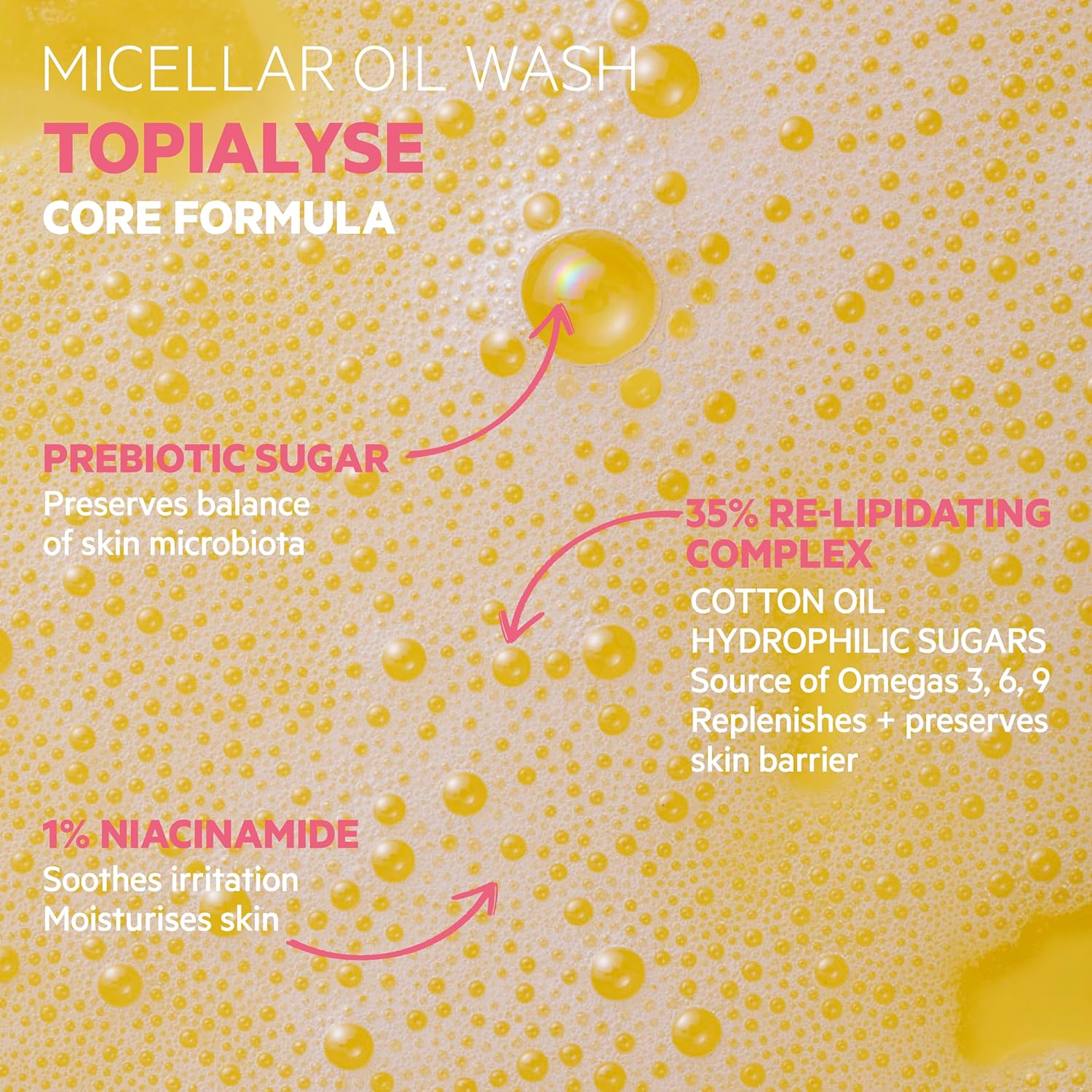 SVR Topialyse Micellar Cleansing Oil with Niacinamide & Prebiotics - 24hr Moisturizing Wash for Sensitive Skin, 13.5 Fl. Oz