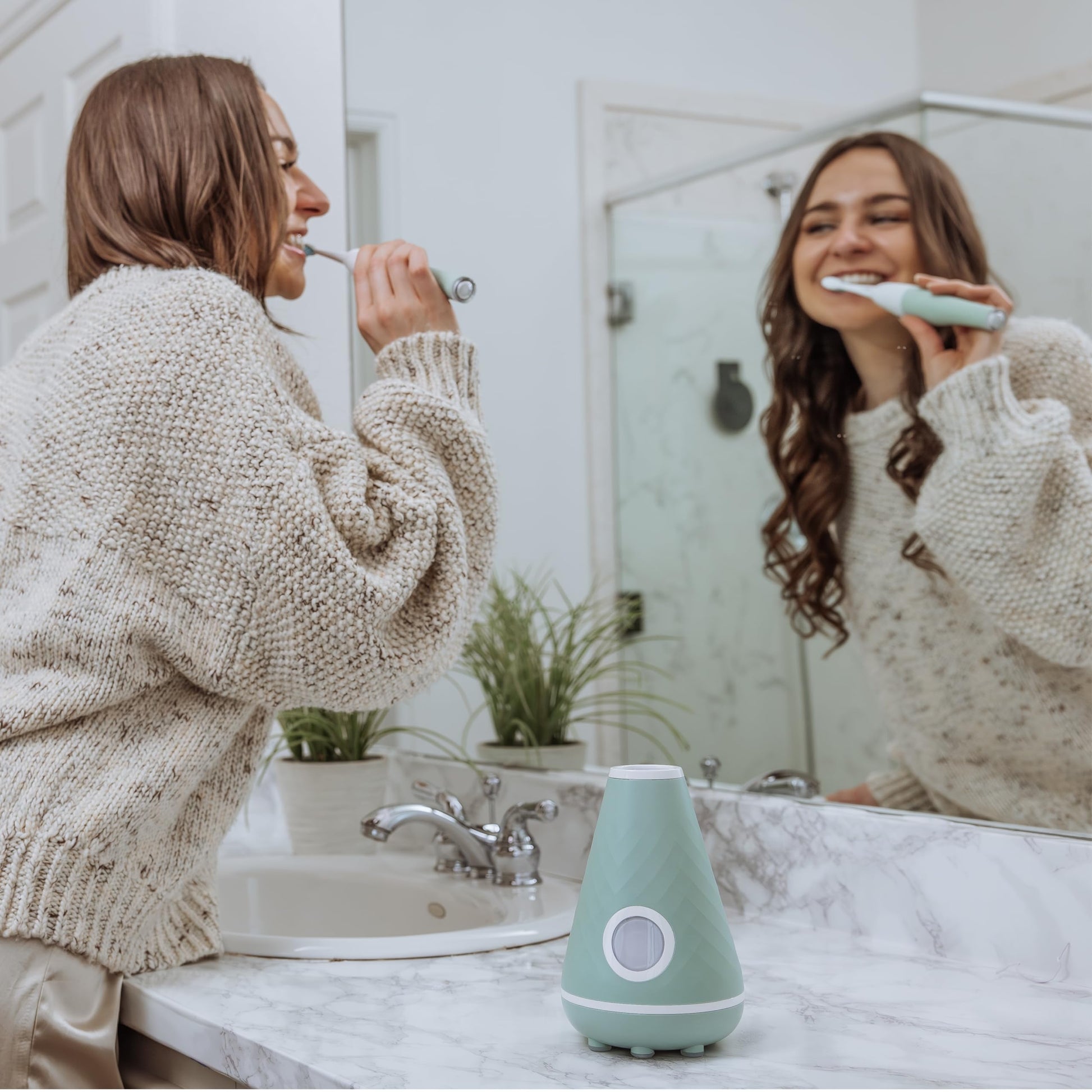 TAO Clean UV Sanitizing Sonic Toothbrush and Cleaning Station, Electric Toothbrush, Dual Speed Setting, Seaglass Green