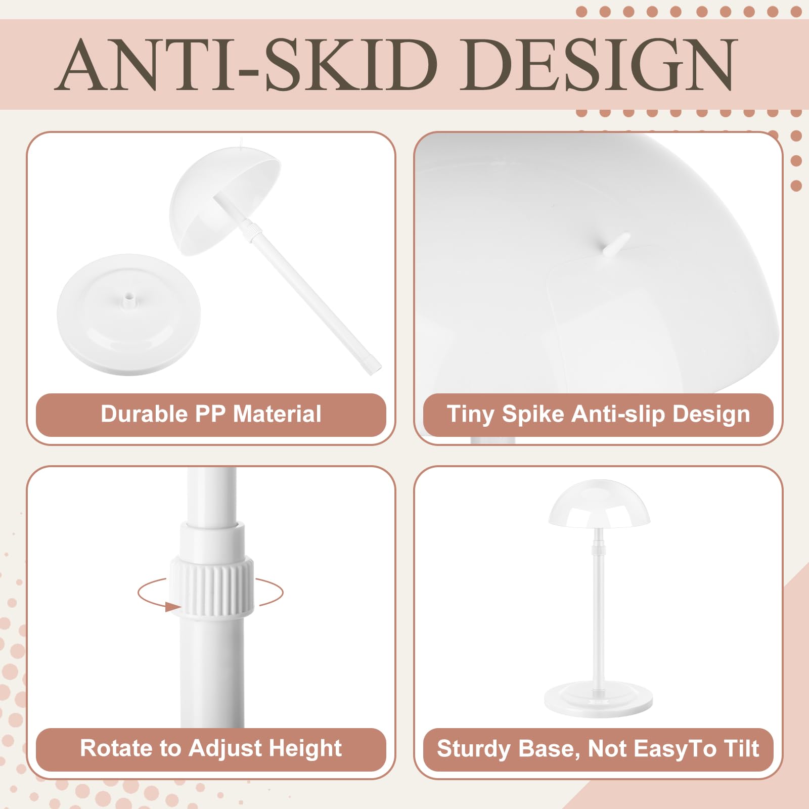 Tatuo 4 Pcs Wig Holders, 9.8"-18.9" Adjustable Height Wig Head Stand Portable Hat Display Holder Storage for Multiple Travel Wigs Styling Practice women DIY Head Stand Non Slip Stable(White)