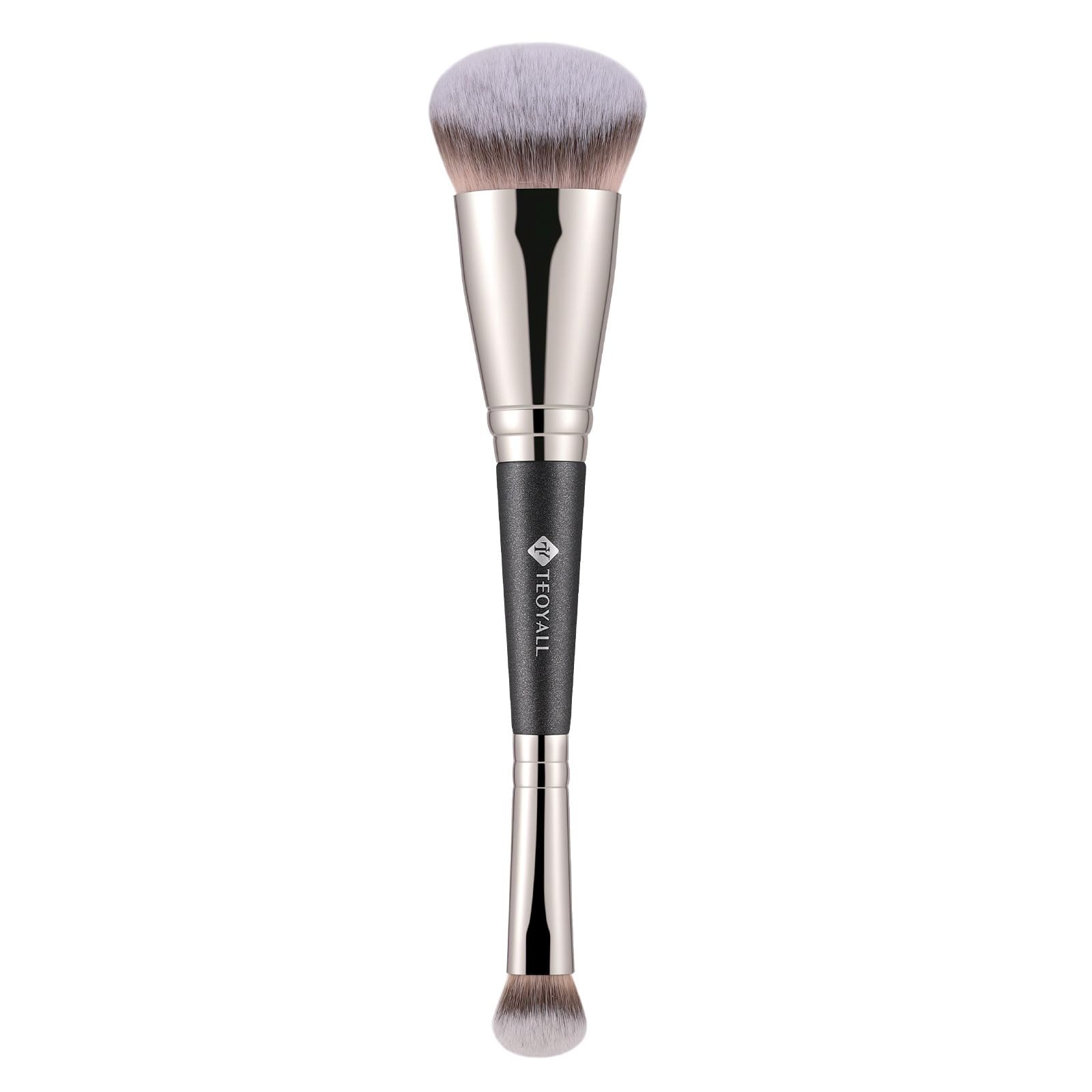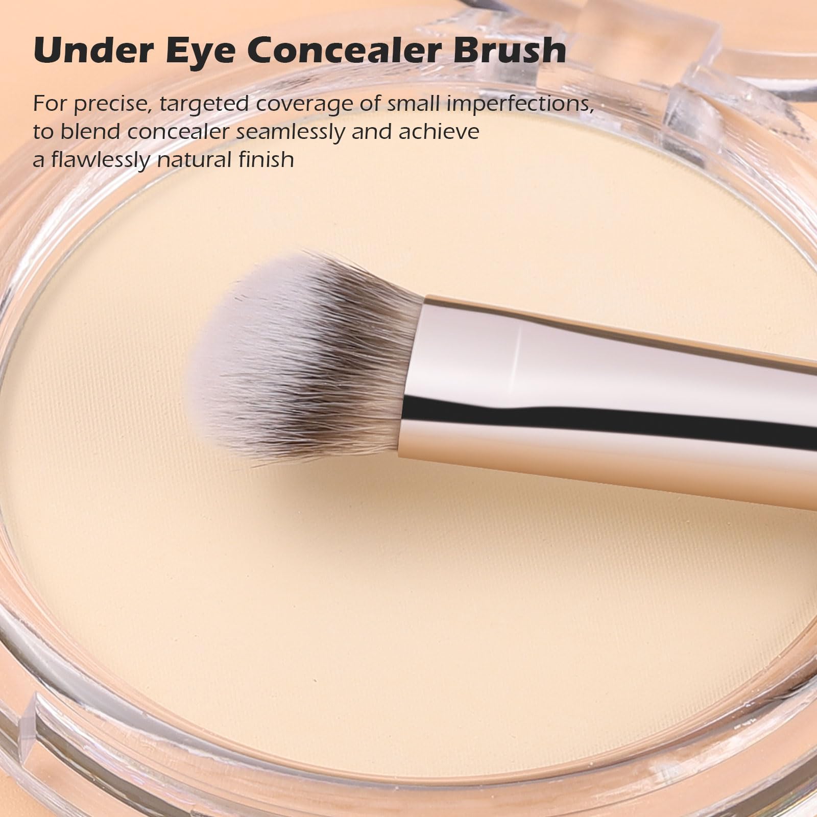 TEOYALL Dual-Ended Foundation Under Eye Concealer Brush, Sloped Angled Contour Synthetic Bristles for Liquid Cream Powder