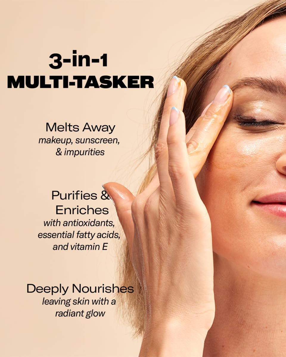 - AWARD-WINNING, MELTS MAKEUP WITHOUT STRIPPING SKIN: Our award-winning sorbet-soft cleansing balm removes sunscreen, long-wear makeup, environmental pollutants, and excess oil effortlessly; it emulsifies with water and rinses clean without residue, prepping your skin for the second step of your routine