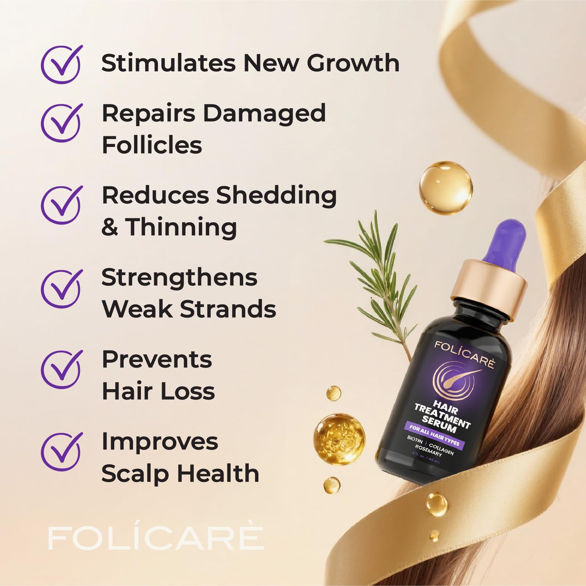 - VISIBLE BABY HAIRS SPROUTING: See new growth in as early as 6 weeks with Folicare hair serum for hair growth. Our professional-strength hair thickening serum targets hair loss and thinning areas directly, delivering concentrated nutrients exactly where women and men need them most.