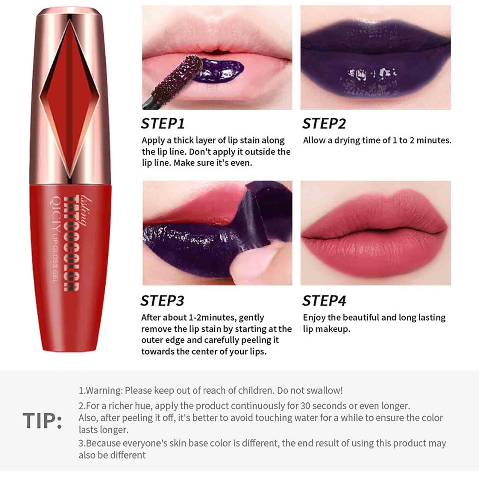 - Long-Wearing & Water-Resistant:The gel-based formula is transfer-proof and water-resistant, ensuring your lip color stays flawless from morning to night. Simply peel off the darker layer after 3-5 minutes for stunning, long-lasting results.