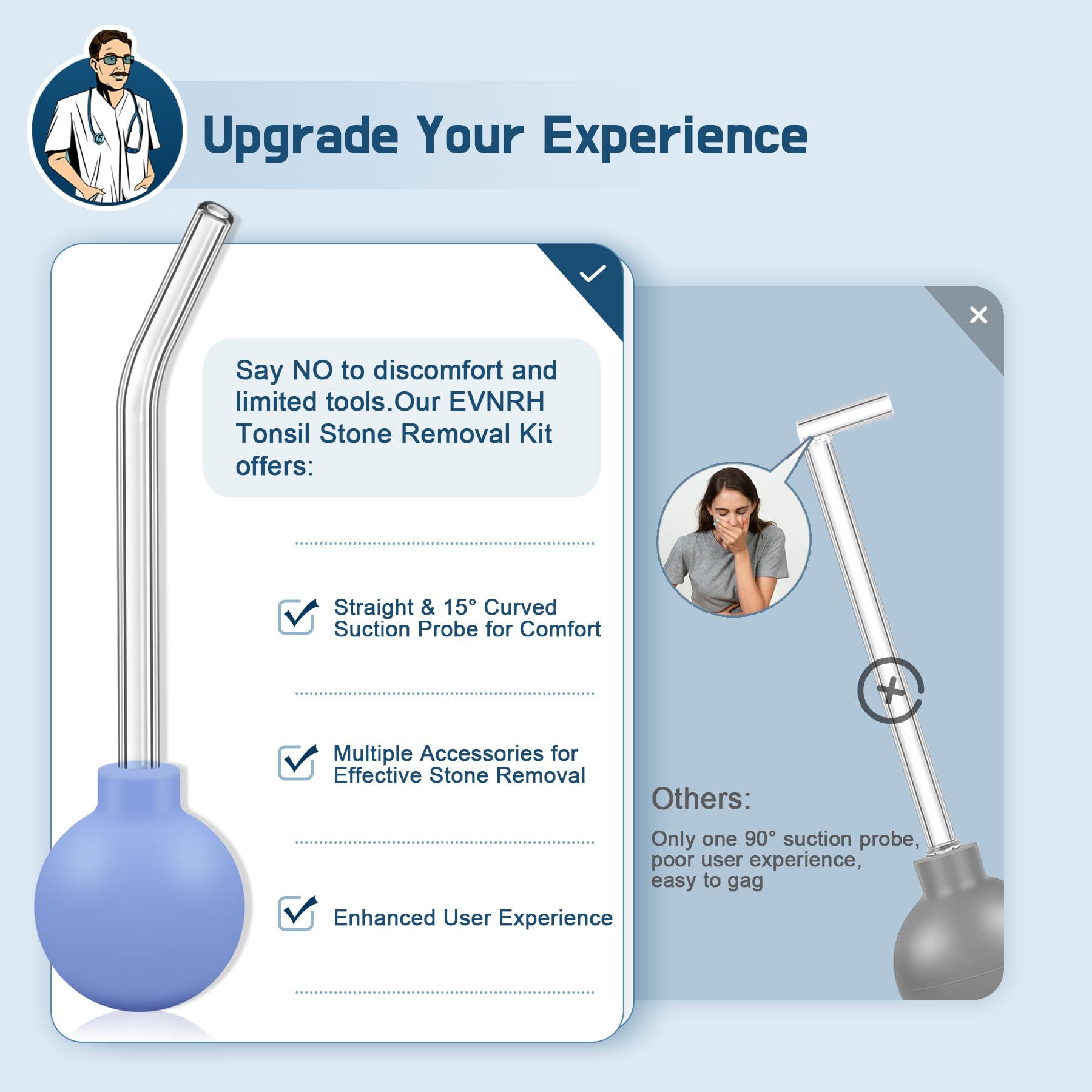 - Safest and comfortable: Made from medical-grade and tasteless PVC materials, this tonsil stones cupping tool features extra smooth edges and an optimized pipe design to reduce the gag reflex and ensure a pain-free experience.