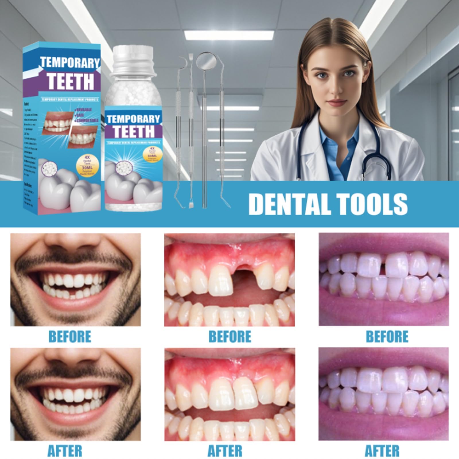 - Easy to Use: Use warm or hot water to heat the filling bead, shape the filling bead to fit the missing tooth in the upper or lower jaw, and when the filling bead is dry, the filling bead can be fixed in the right position. No dental cement or glue required.