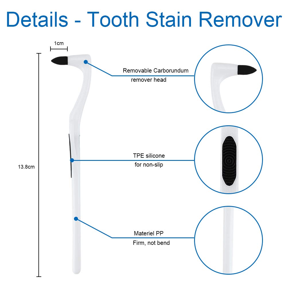 - EASY TO APPLY & CLEAN - Material of the teeth stain remover is polypropylene, easy to clean with water. Head is designed with an angled soft pumice stone which can reach the most challenging spots. Handle designed with non-slip rubber, much comfort and safer than a metal tooth remover