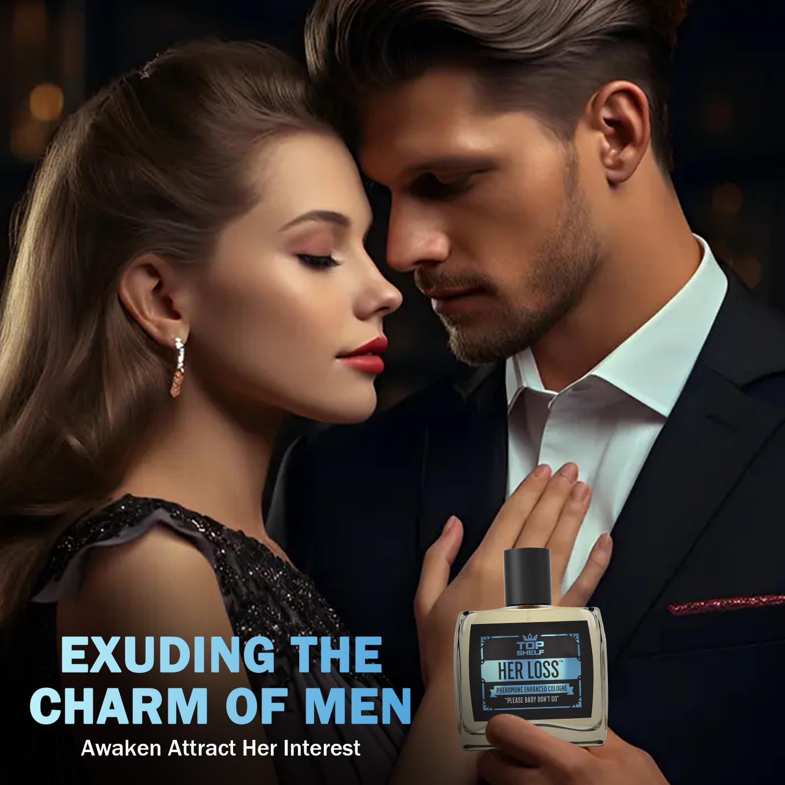- PREMIUM PHEROMONE-INFUSED FORMULA Elevate your presence with our natural herbal cologne, expertly designed to enhance attraction. Infused with pheromones, this Her Loss Perfume harnesses the magnetic power of Eros, amplifying confidence and virility. The woody-aromatic blend captures the essence of masculinity, making it the ultimate choice for men who demand sophistication and allure.