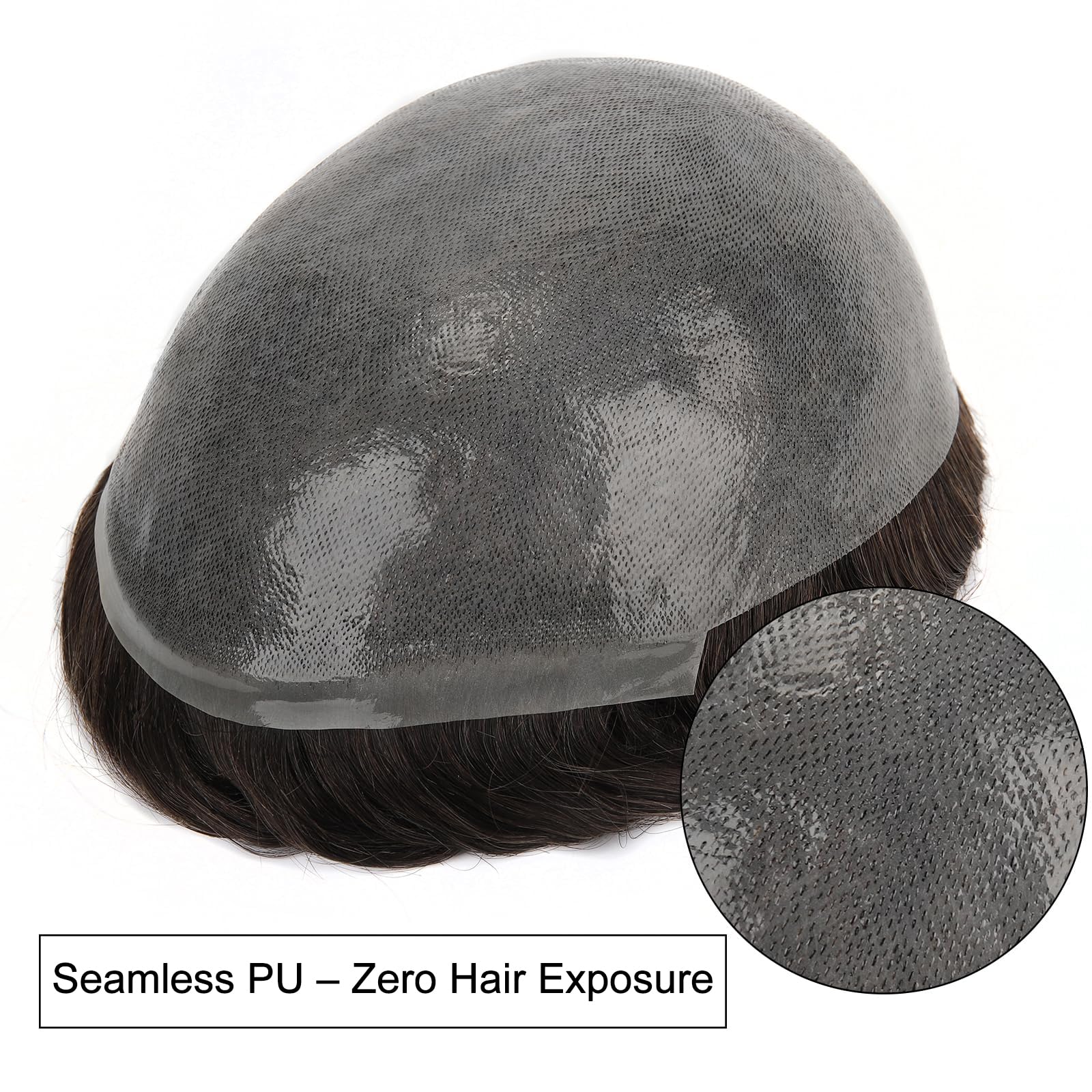 Topunique 0.08mm Thin Skin Toupee for Men, Remy Human Hair 8x10 Inch PU Base 110% Medium Density Knotless V-Looped Hairline #1B Natural Black
