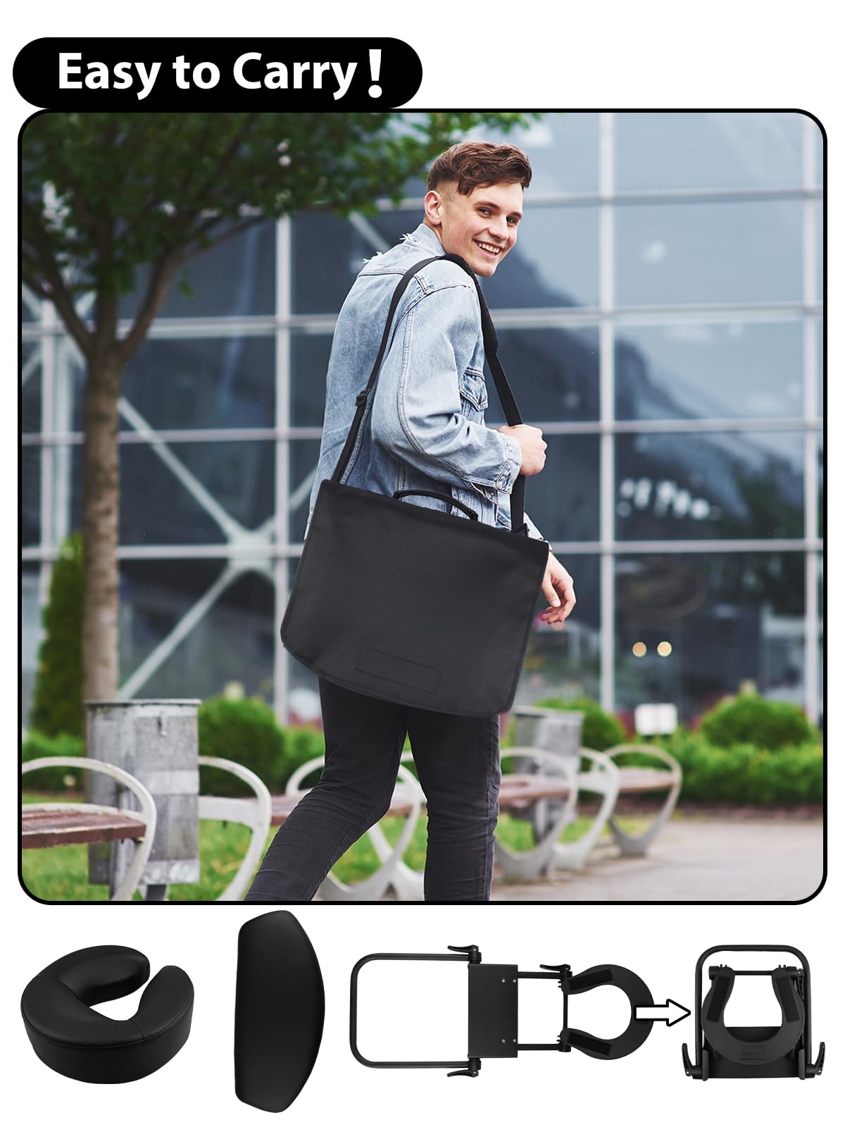 TOROKOM Adjustable Headrest Face Pillow Cradle & Face Cushion Support Bracket, Headrest Face Cushion Face Pillow, Salon Home Mattress Massage Kit (Black)