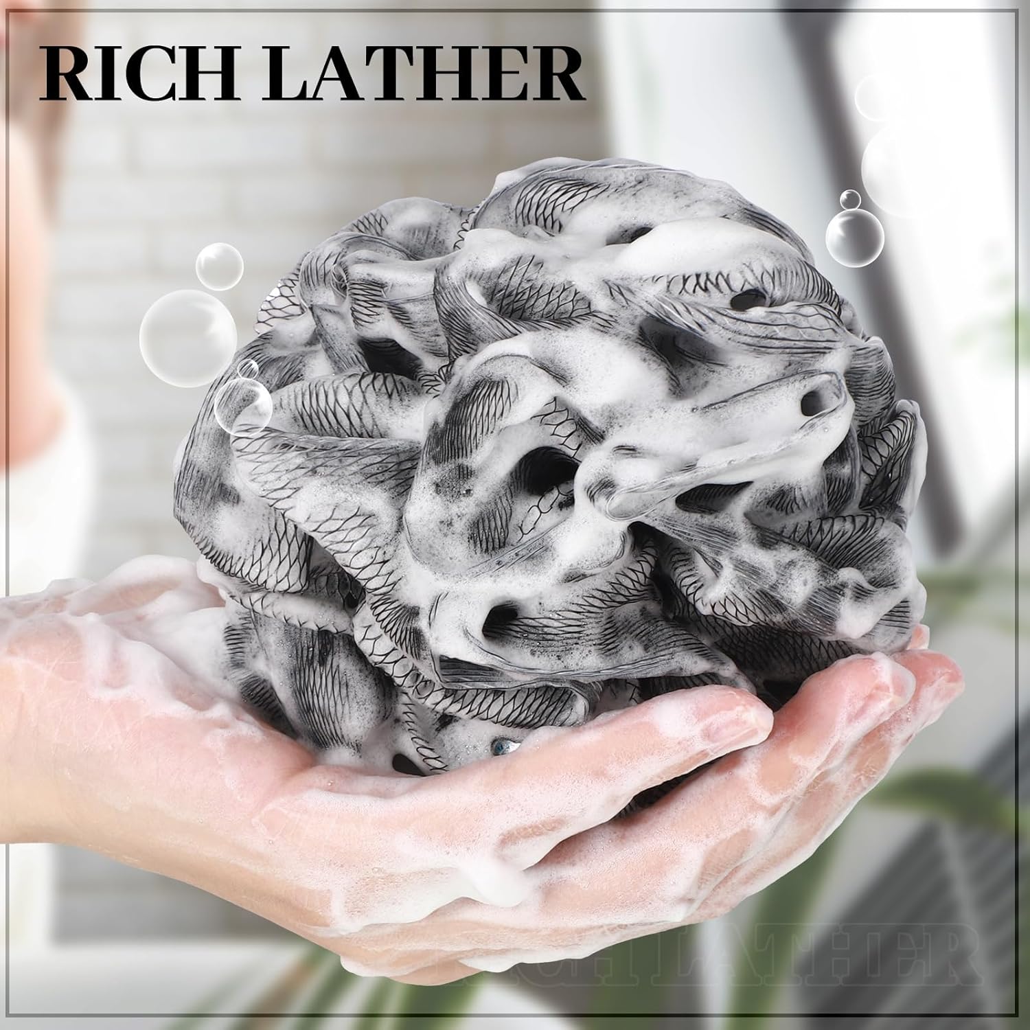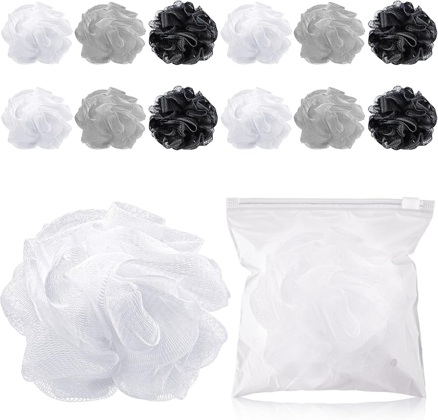 - Quality Materials: made from quality PE material, this black and white loofah offers cozy bathing experience, due to its soft features; The durable of the material ensures long lasting usage despite daily wear and tear, which dries quickly and can be reapplied; Easy to hold and hang design brings convenience to your life